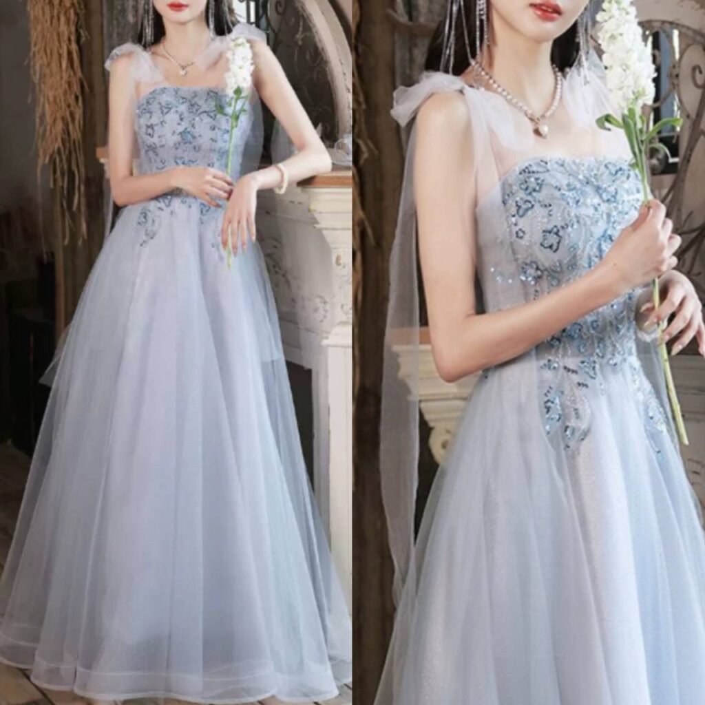 「上品」「体型カバー」「写真で華やか」が全部ほしい人へ。花柄モチーフのシアーで上半身に立体感が出て、ウエストリボンで腰位置が上がりやすい設計、Aラインで動きもきれい。サイズもS〜4XLまで幅広いのが安心ポイントです。