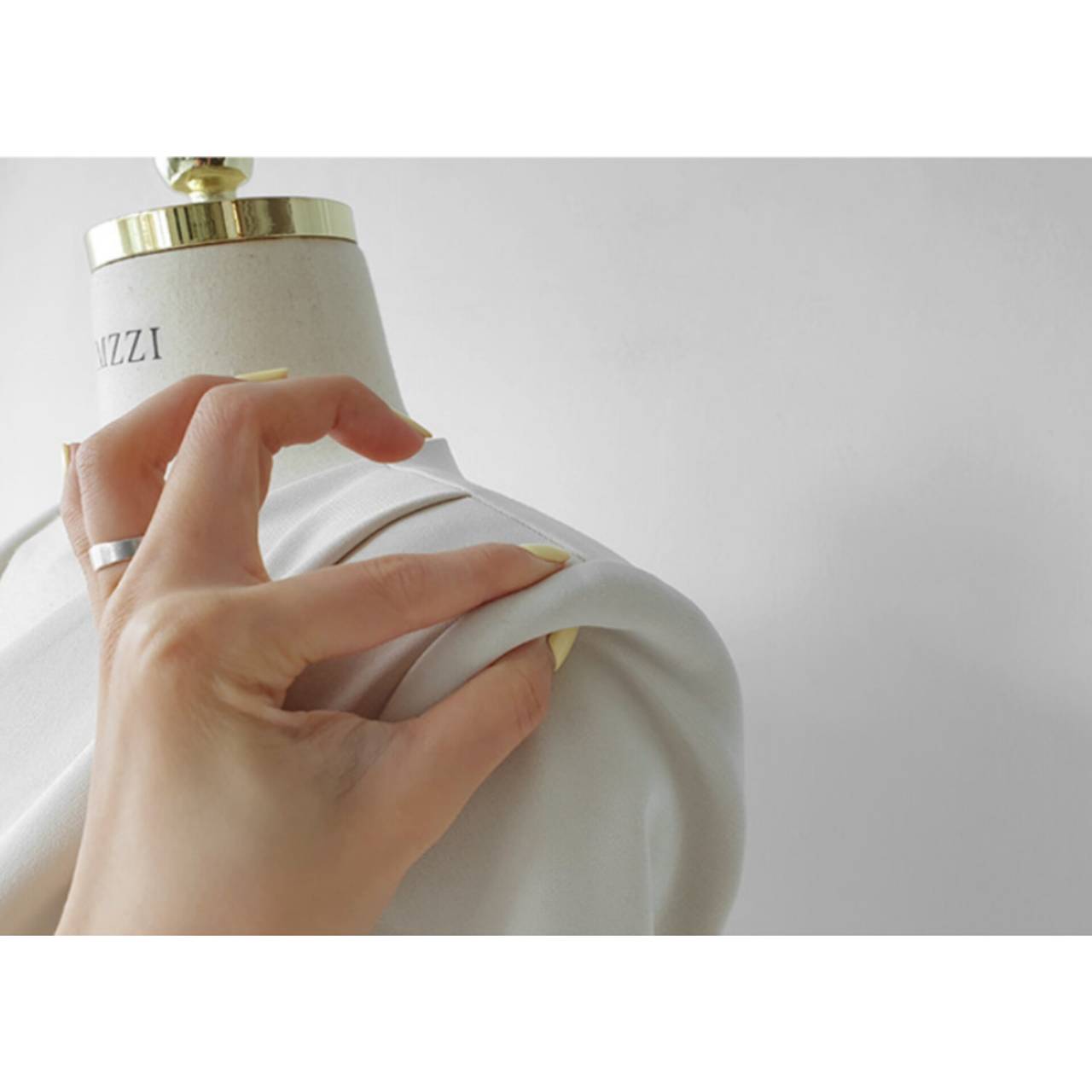 上質感のあるなめらかで程よいハリを備えた高級素材を使用し、身体のラインを拾いすぎず、自然に美しい立体感を演出します。計算されたカシュクールデザインがウエストラインをきゅっと引き締め、視線を縦に流すことで脚長効果も抜群。