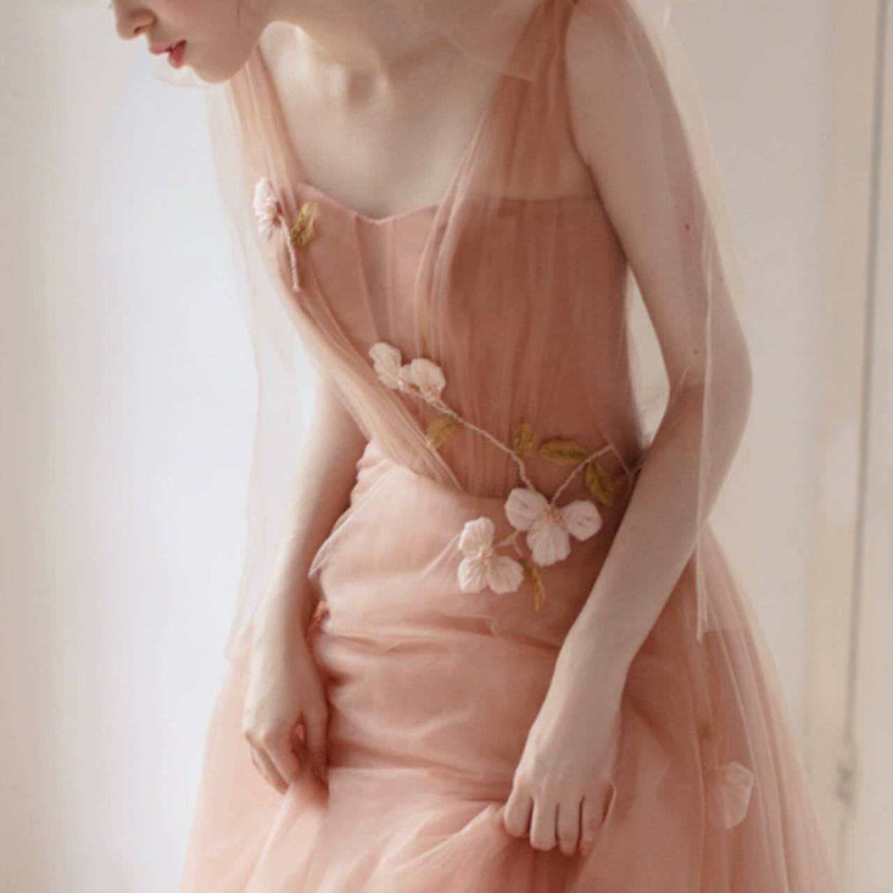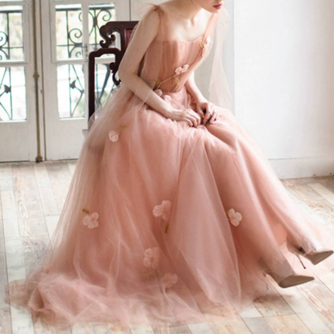 淡く儚いチュールに花が咲く、永遠に記憶に残るドレス。”柔らかな光を纏い、まるで物語のヒロインのような存在感。