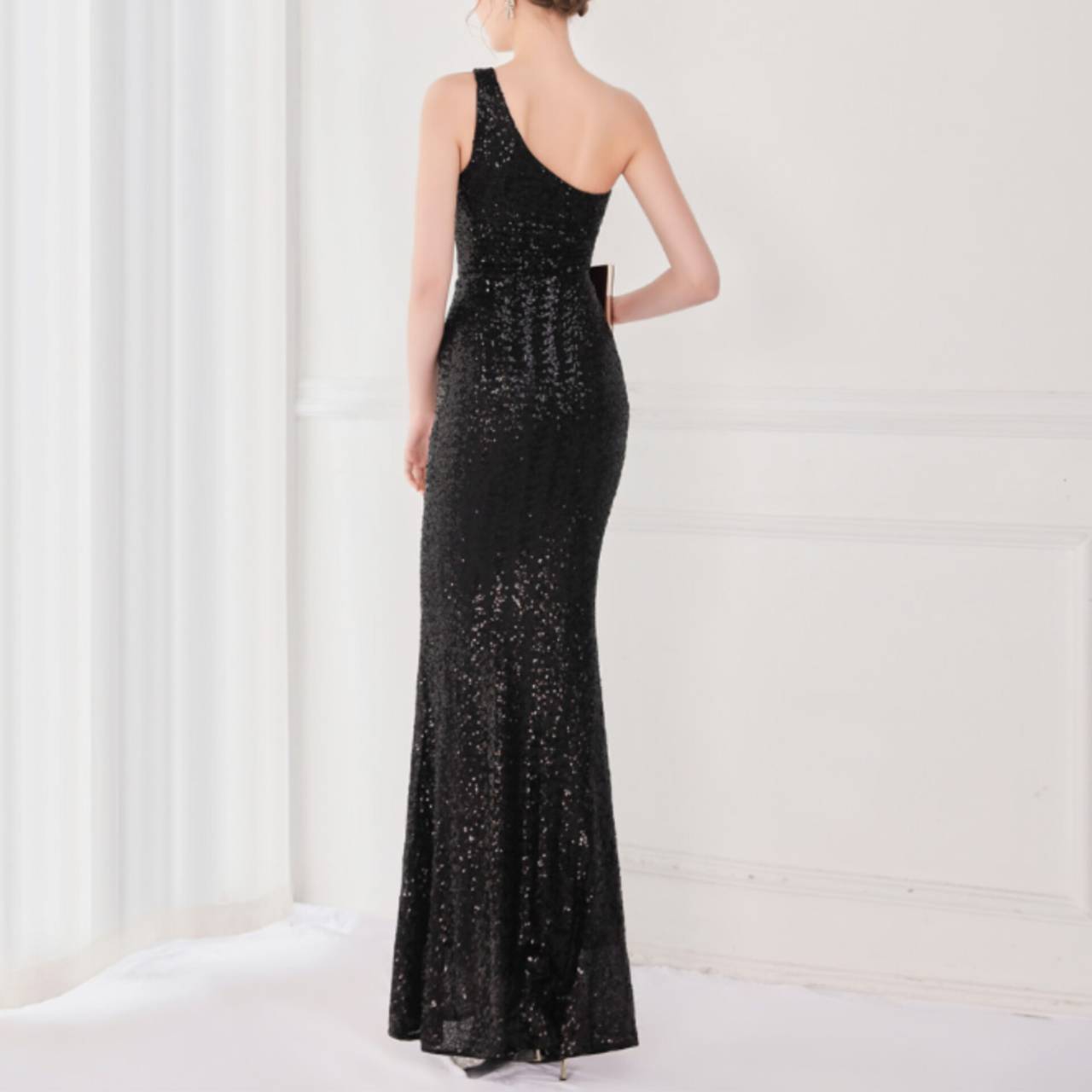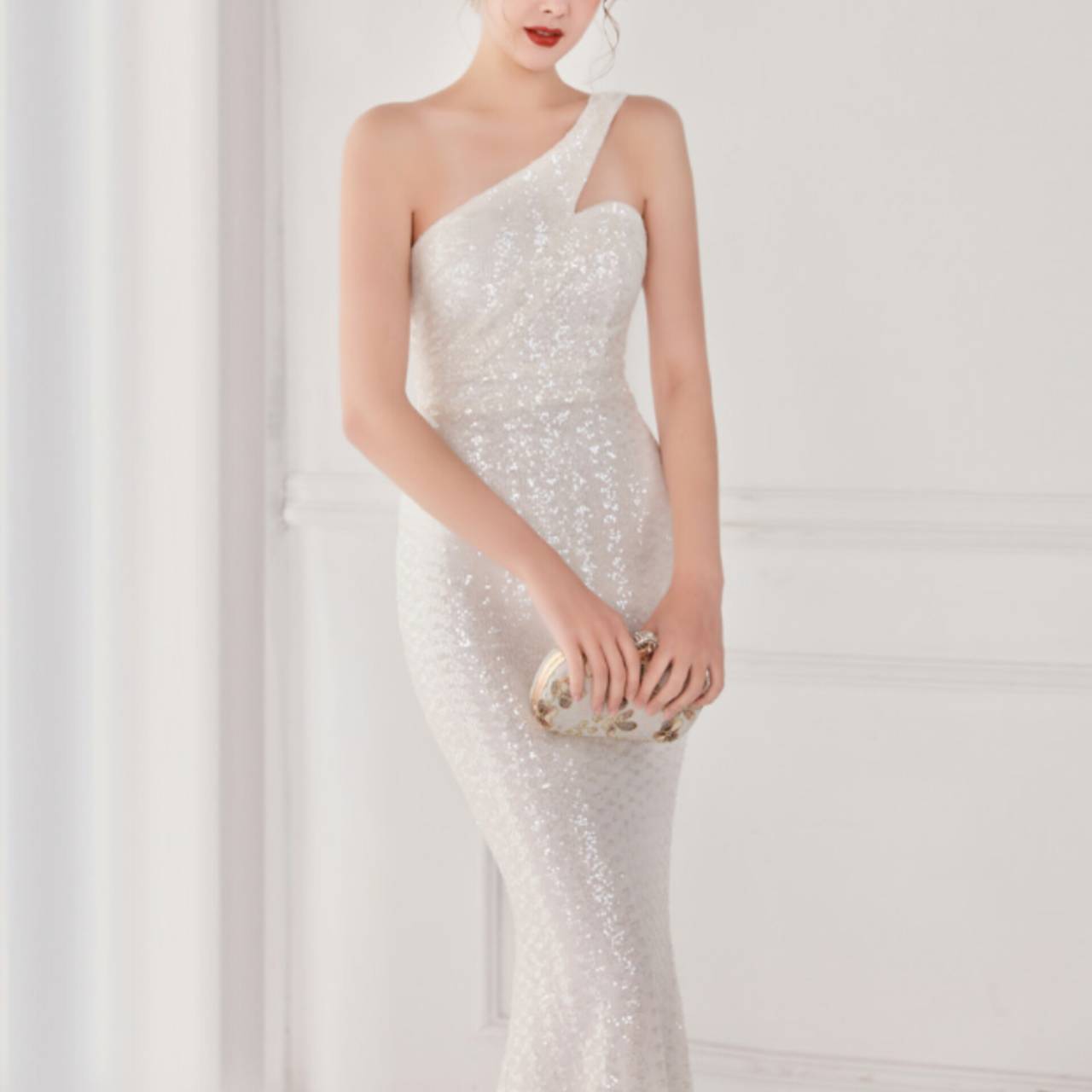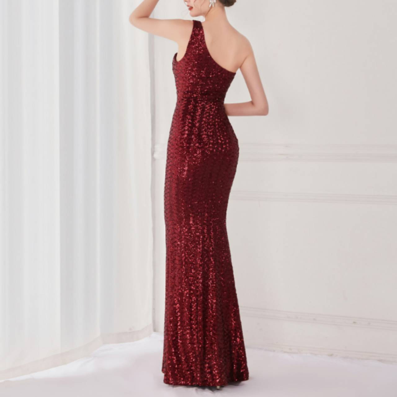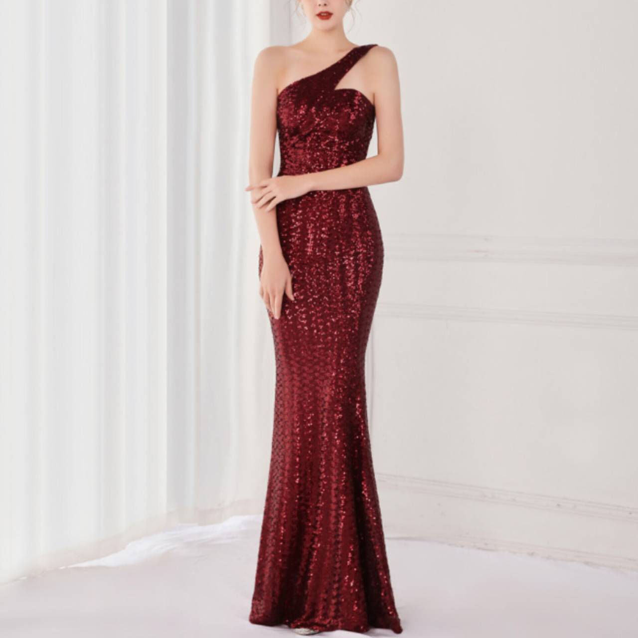 全8色 ドレス イブニングドレス 韓国ドレス キラキラ スパンコール ワンショルダー ハイウエスト マーメイド ロング アシンメトリー グリッター 美シルエット スタイルアップ S/2XL 韓国【K5358】