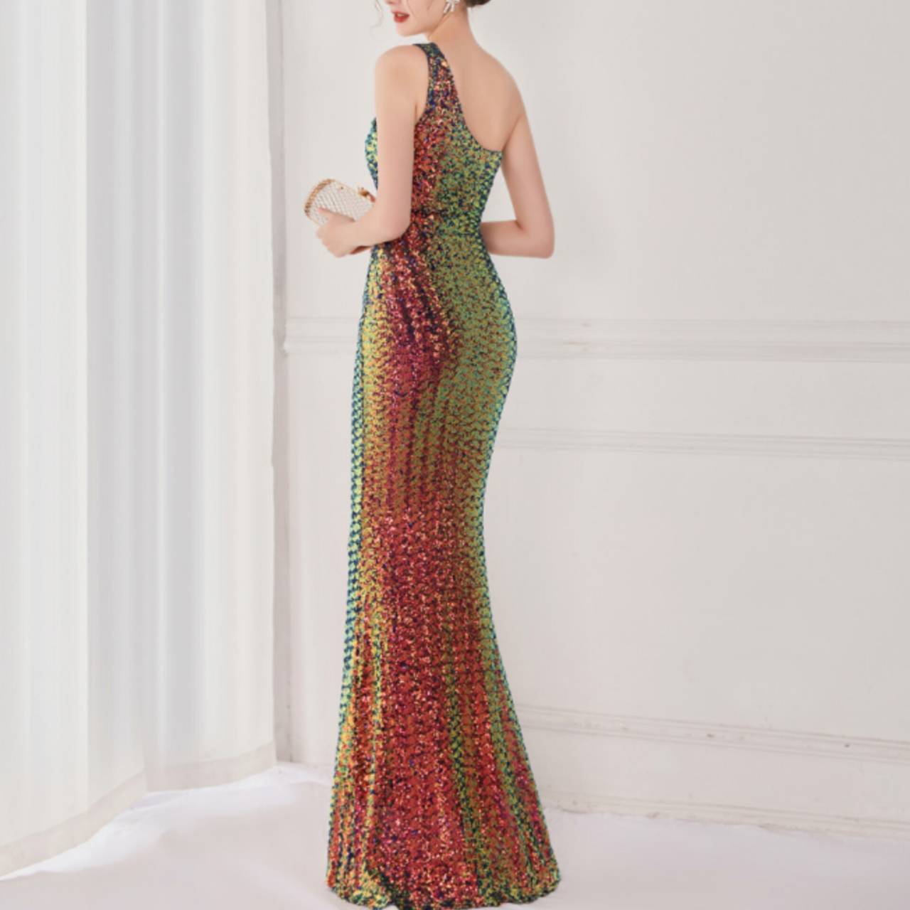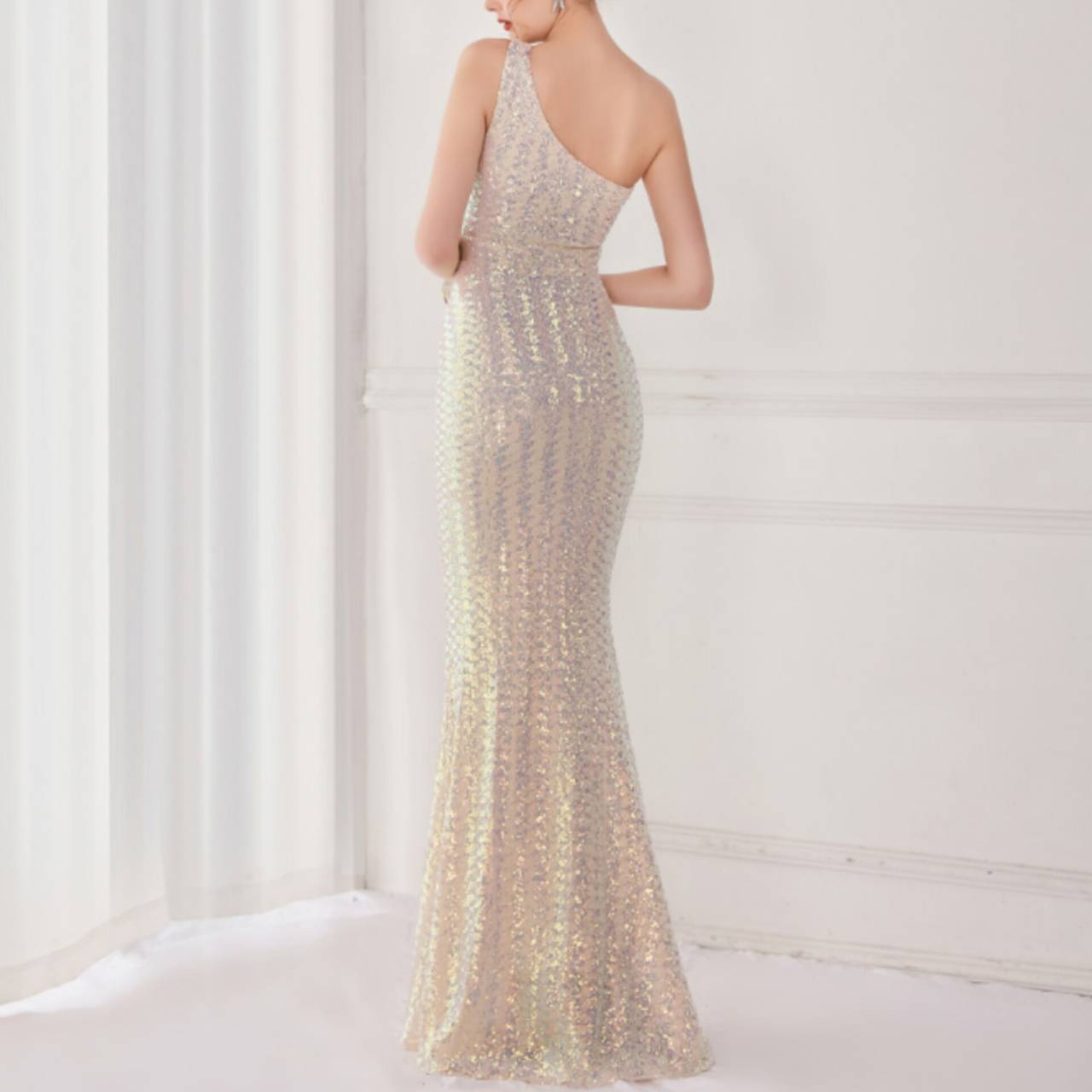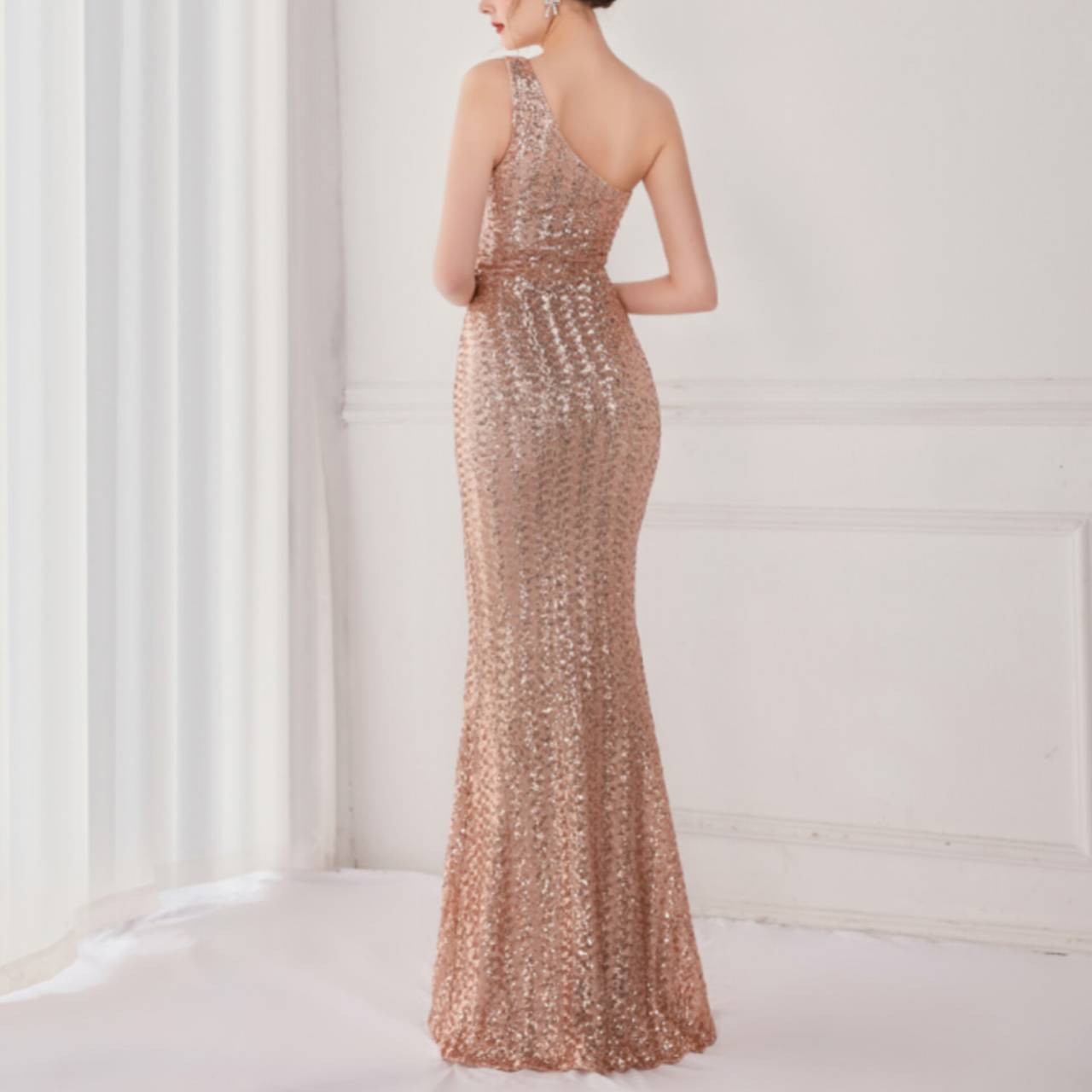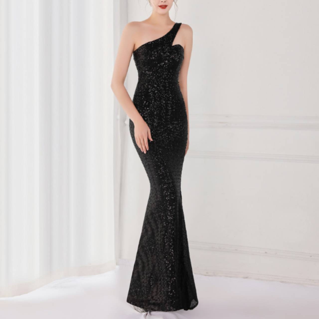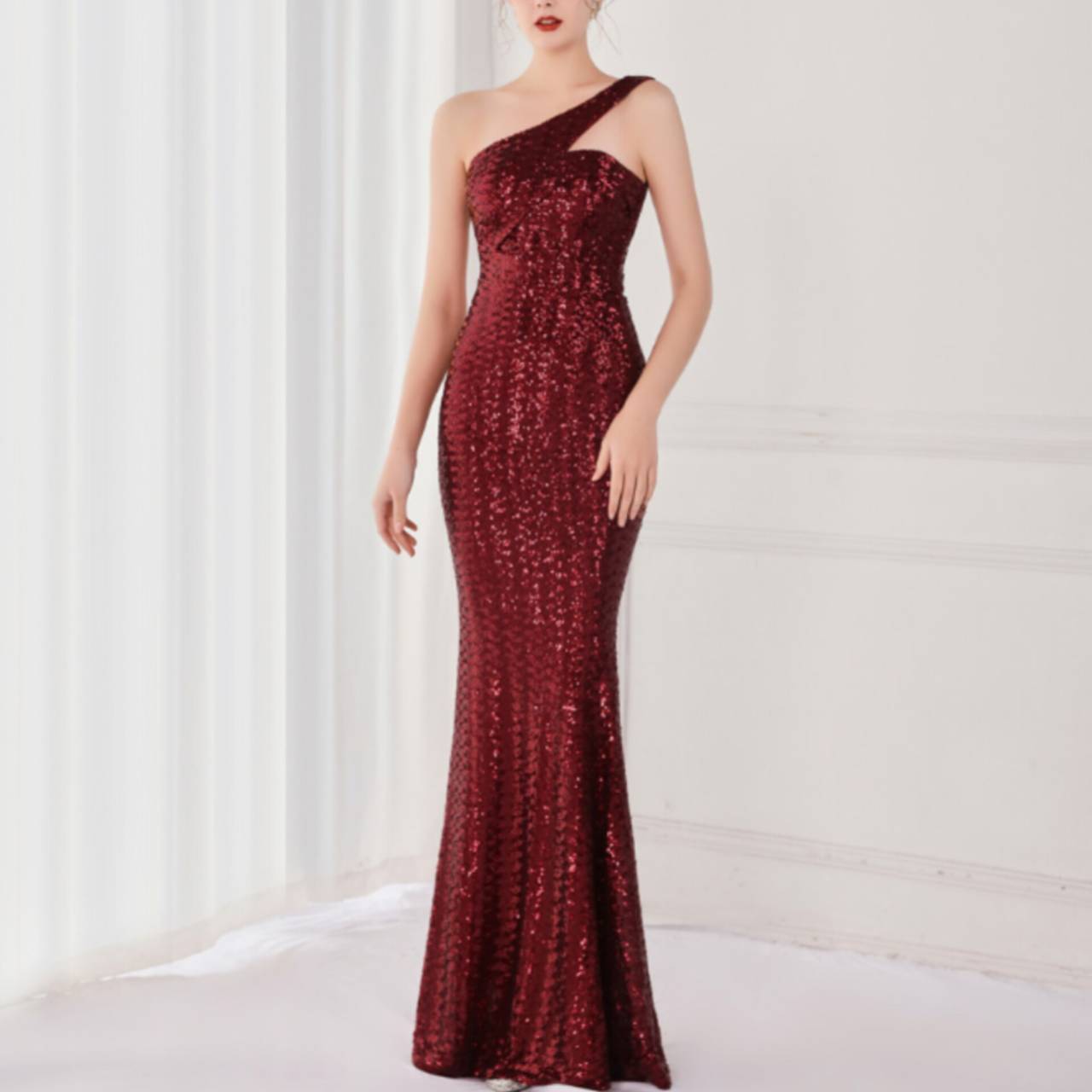 全8色 ドレス イブニングドレス 韓国ドレス キラキラ スパンコール ワンショルダー ハイウエスト マーメイド ロング アシンメトリー グリッター 美シルエット スタイルアップ S/2XL 韓国【K5358】