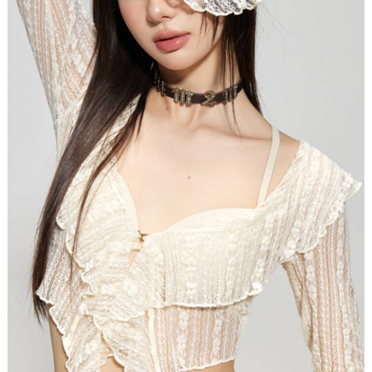 肌を透かす軽やかなレースが抜け感を生み、