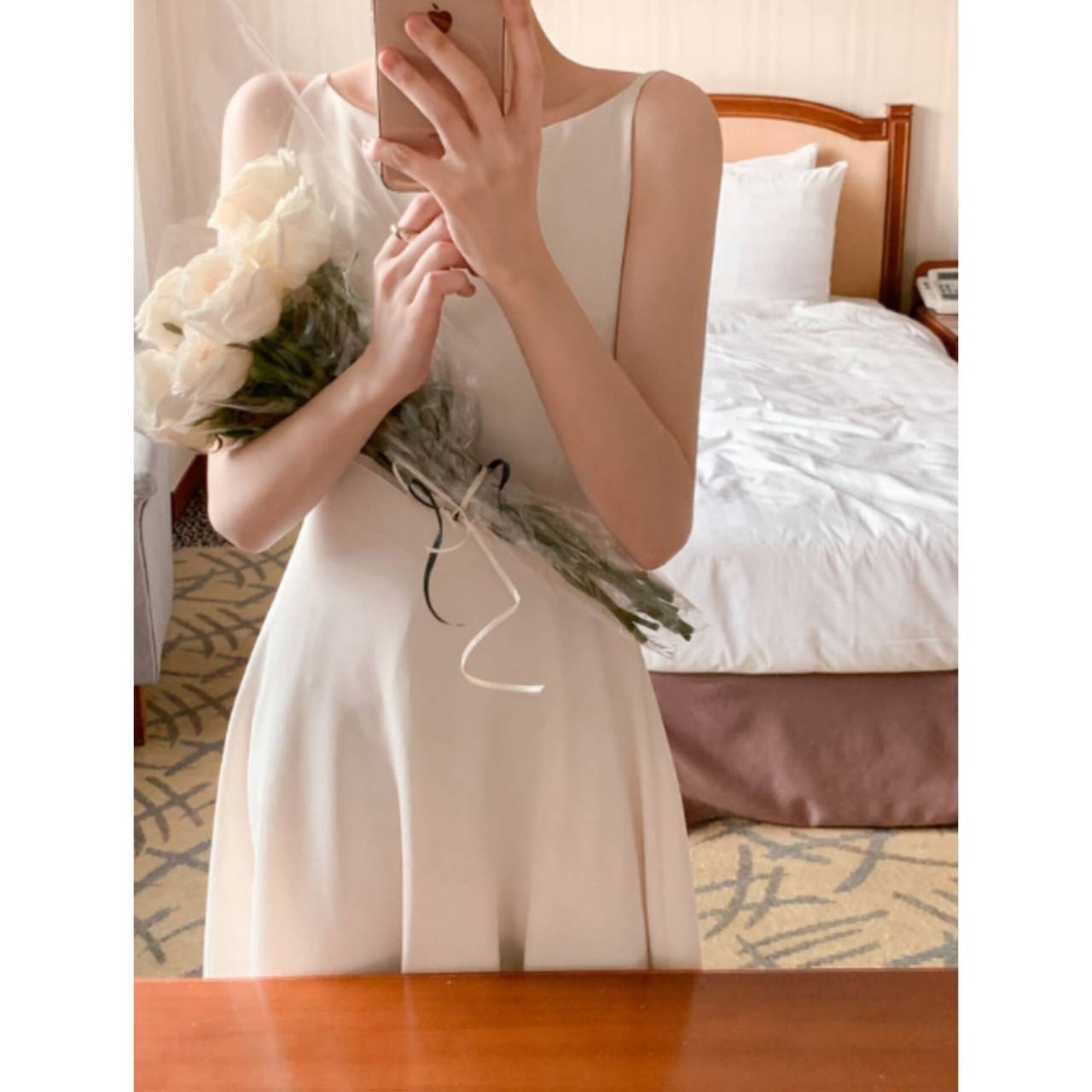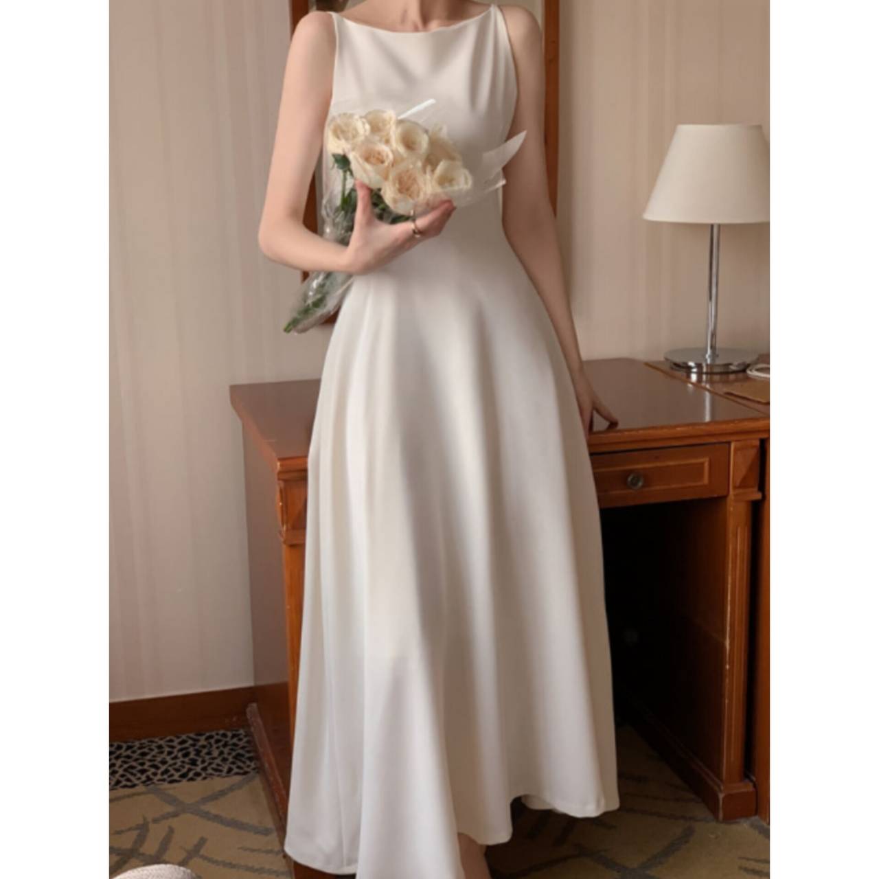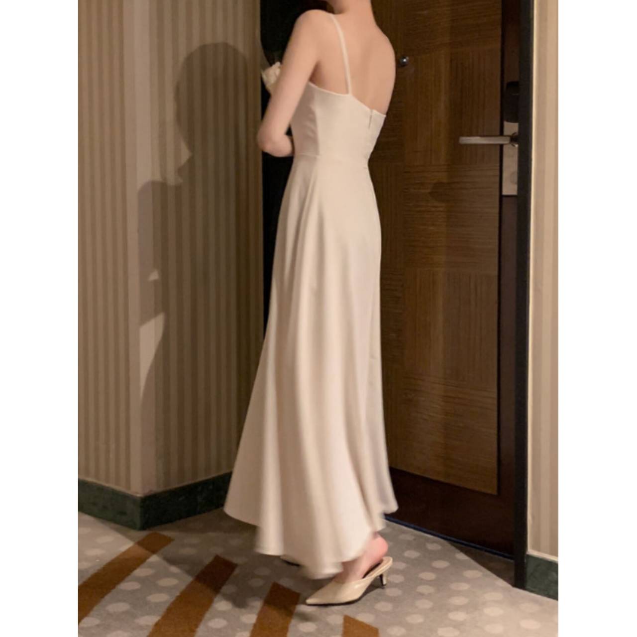 サイズはS〜Lまでご用意し、体型や身長を問わずお選びいただけます。このドレスを着た瞬間、