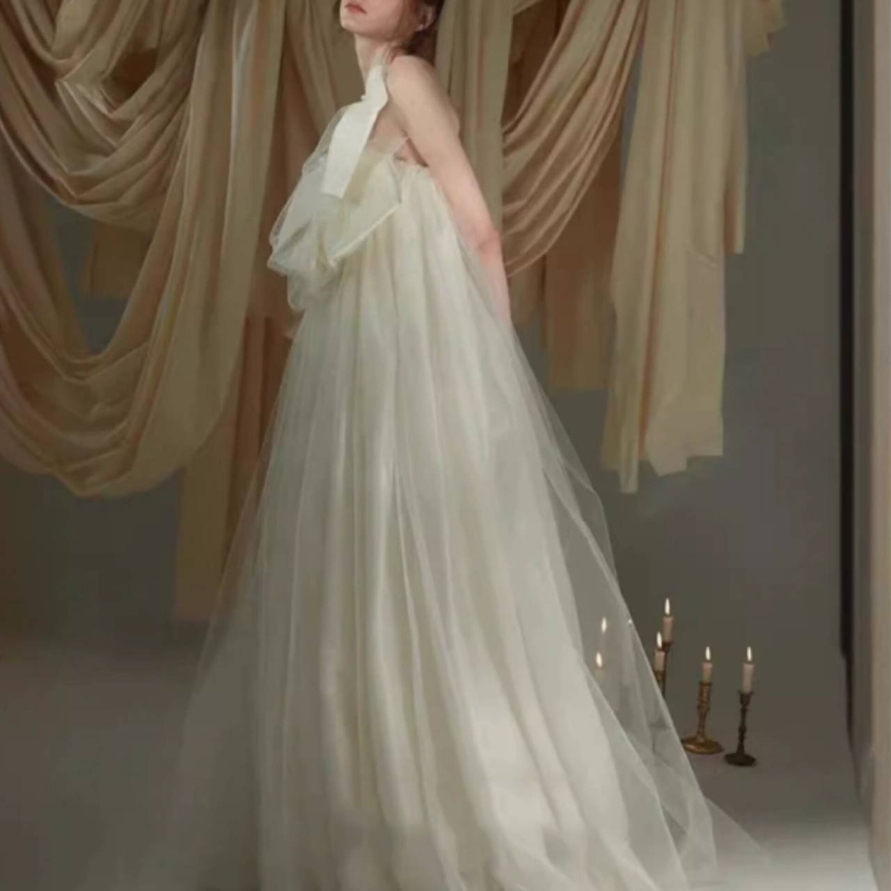 歩くたびに揺れるチュールが写真に奥行きを生み、自然光でも夜のキャンドルシーンでも幻想的な雰囲気を演出します。