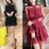 カラーはブラックとワインレッドの2色展開。サイズはS〜Lまで対応。レース越しに漂う肌の透け感が、女性らしさと自信を引き立てる一枚。