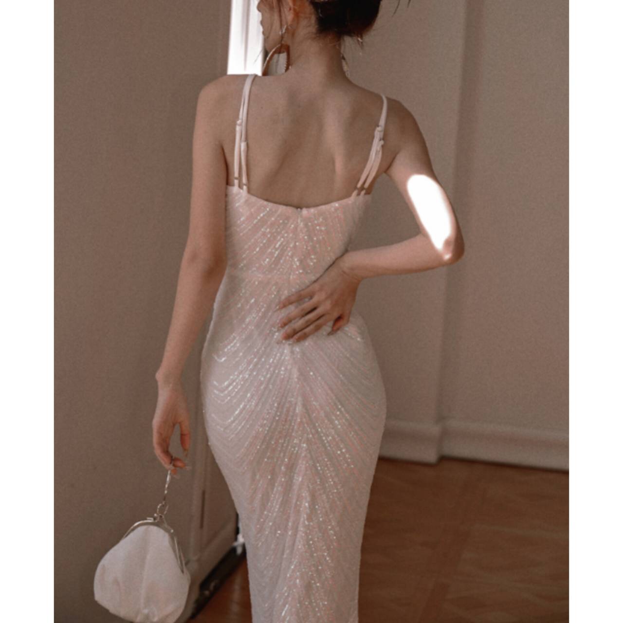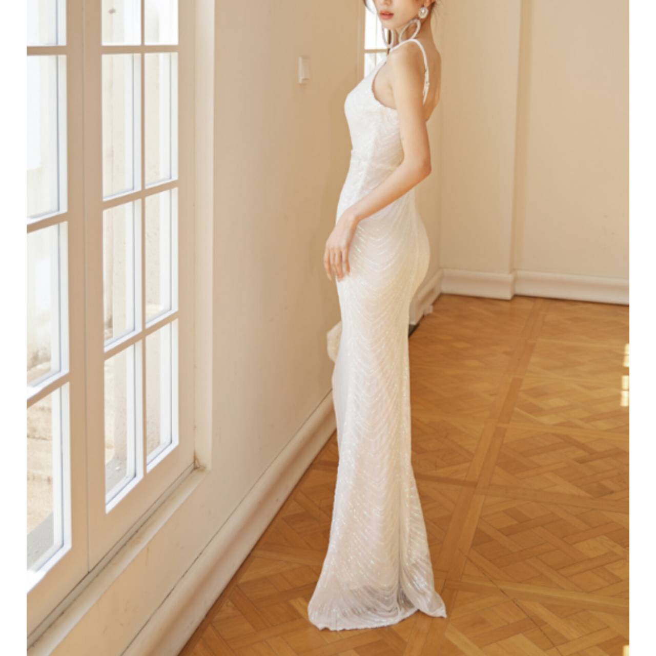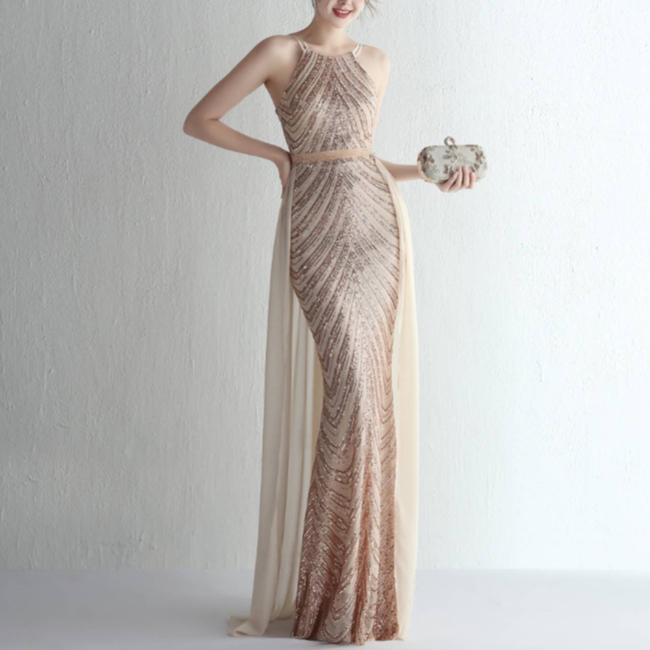 サイズはS〜2XLまで幅広く対応しており、体型や身長に合わせてお選びいただけます。このドレスを纏った瞬間、背筋が自然と伸び、立ち姿までも美しく変わる。