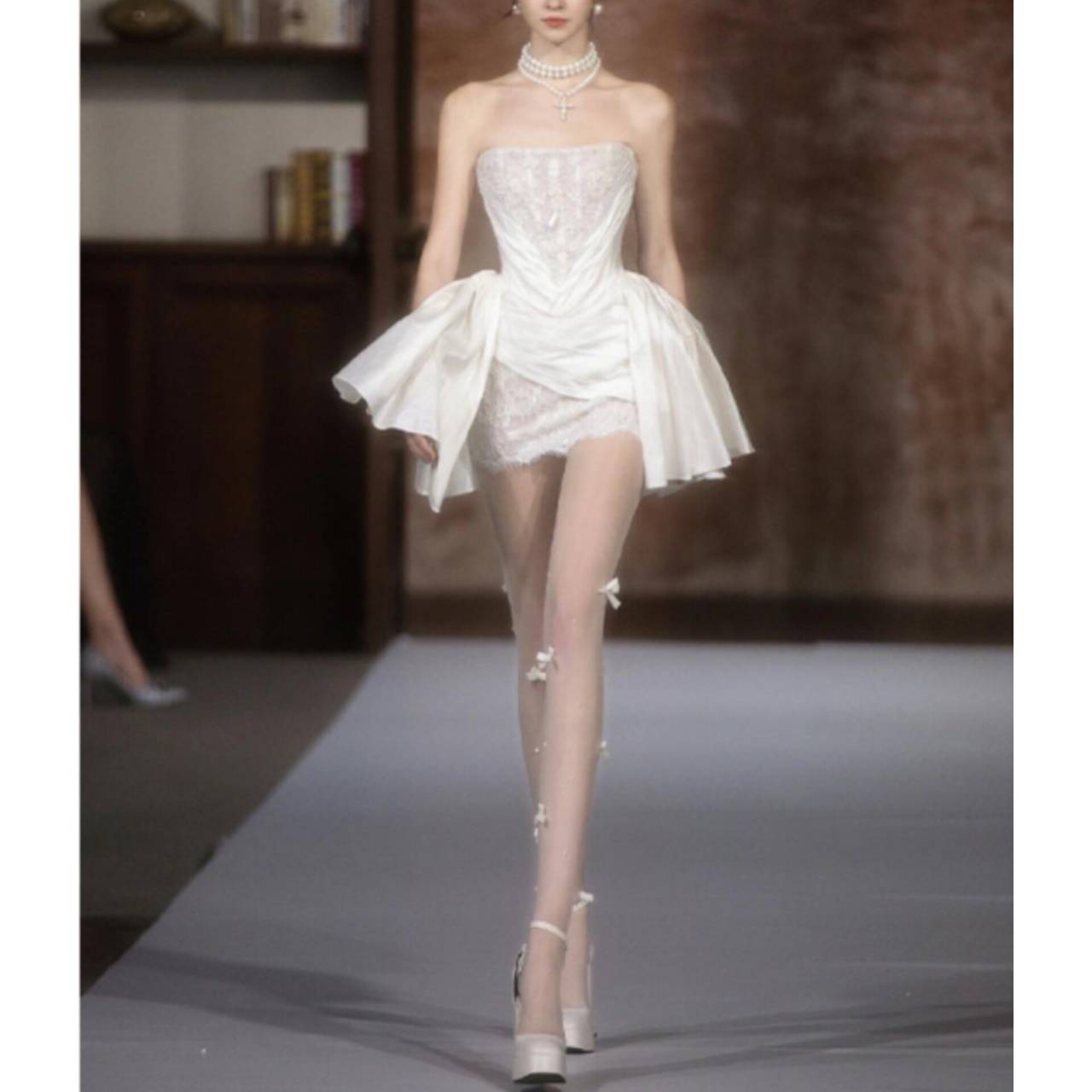 一歩踏み出した瞬間、視線を独占するドラマティックミニドレス。