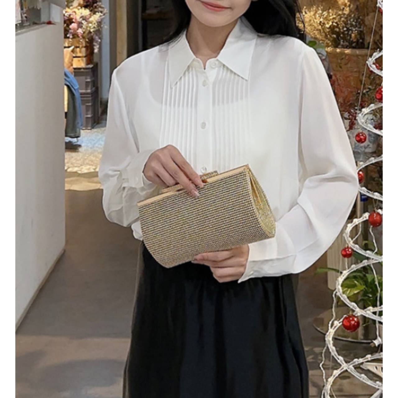 その仕上げになるのが、小物の輝きです。このバッグを持つだけで、