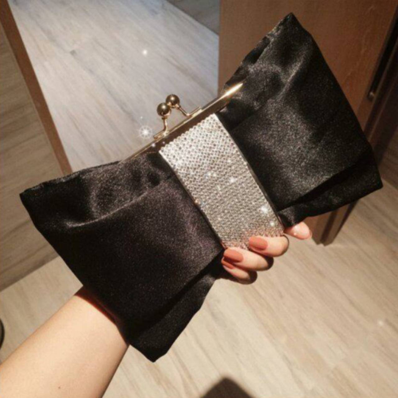 このバッグは、持つだけで“きちんと感と高級感”を同時に演出する一品です。上質な光沢サテン素材を使用した、立体リボンデザインのパーティーバッグ。
