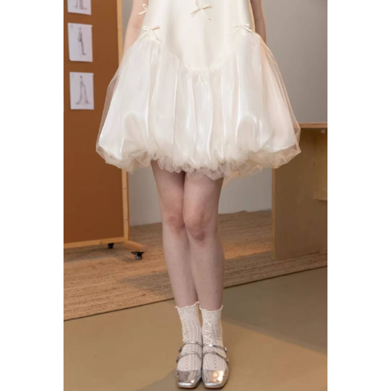 歩くたびにふわっと揺れ、写真映えも圧倒的。カラーは純白ホワイト。