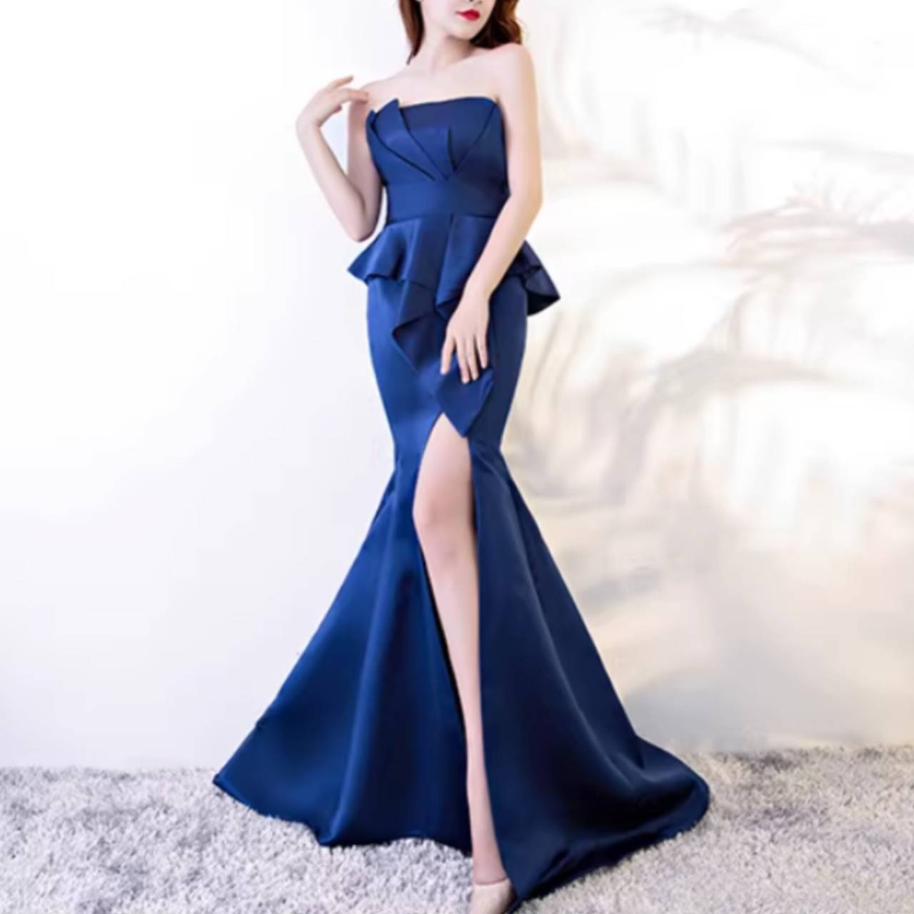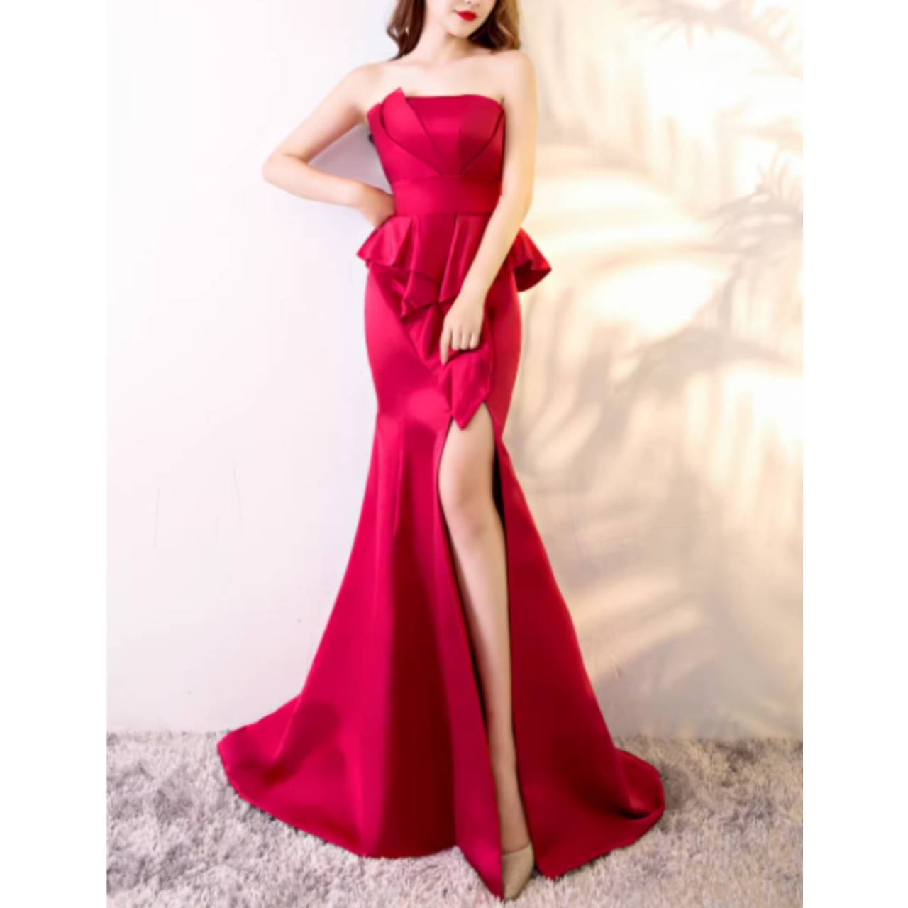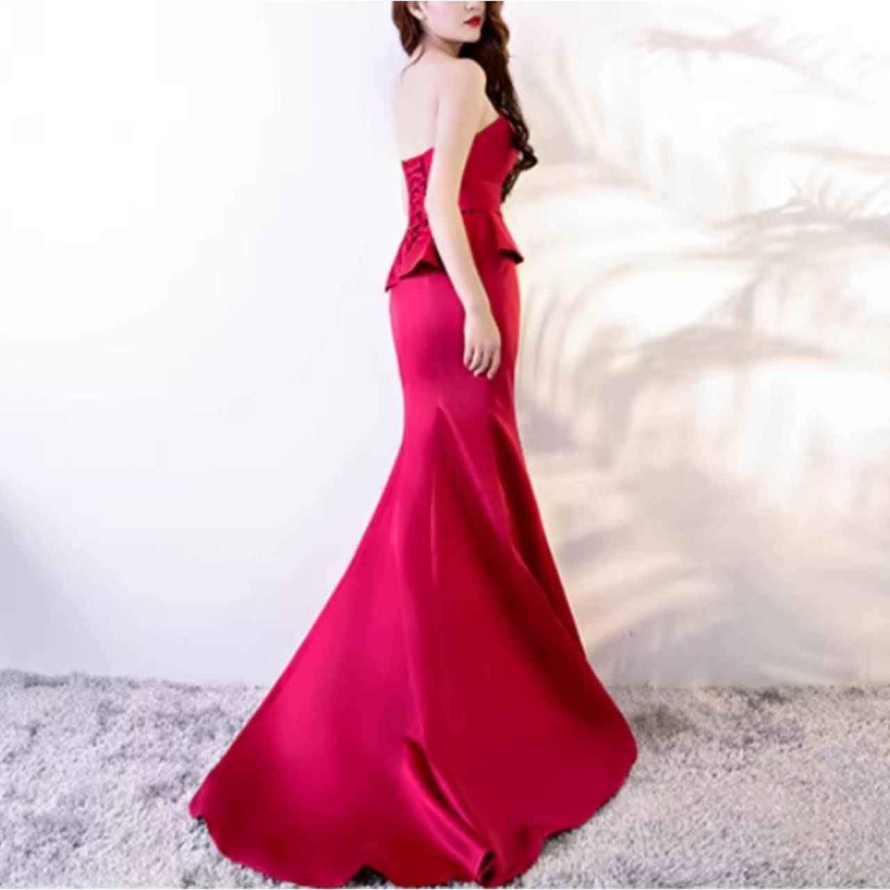 全8色 ドレス イブニングドレス パーティードレス 韓国ドレス ビスチェ ドレープ ハイウエスト バックレースアップ レースアップ 編み上げ ペプラム フリル フロントスリット ハイスリット スリット マーメイド ロング 美シルエット エレガント アシンメトリー 結婚式 二次会 演奏会 XXS/3XL 韓国【K64】