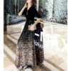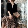 上質な【ベルベット素材×グリッターシークイン】を贅沢に使用。トップス部分は伸縮性のあるベルベットでボディラインを程よく引き締め、Vネックでデコルテを美しく見せます。五分袖が二の腕をさりげなくカバーし、切り替え位置を高めに設定することでウエストを強調しつつ、脚長効果も抜群。煌めきが裾にかけて広がるAラインシルエットは、どの角度から見てもエレガントに映えます。カラーはブラック×ゴールドのグラデーション1色展開、サイズは【XS〜2XL】まで幅広く対応。