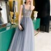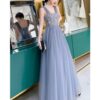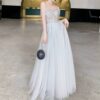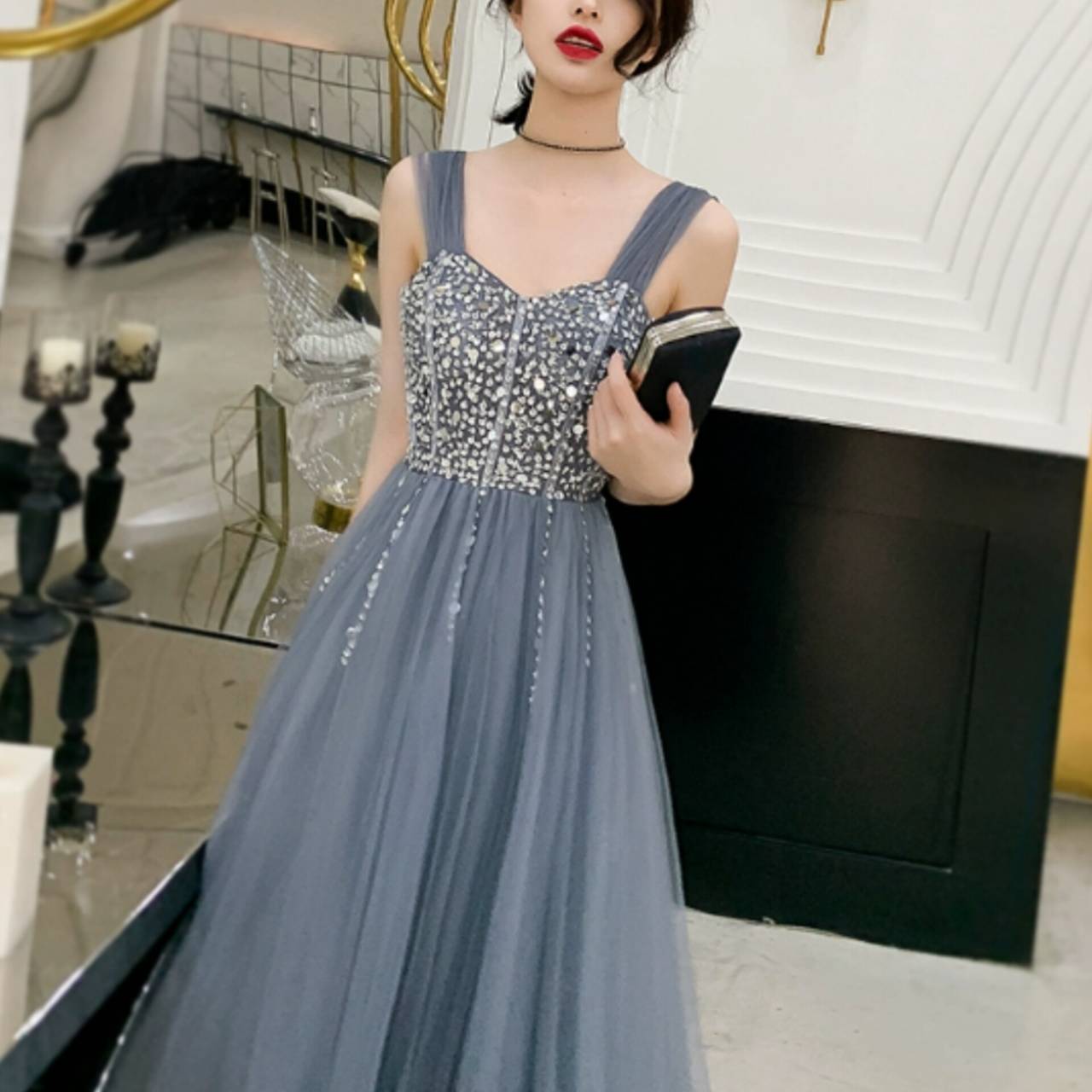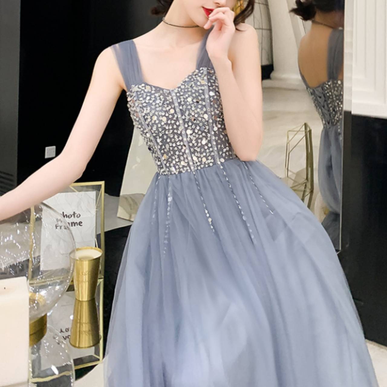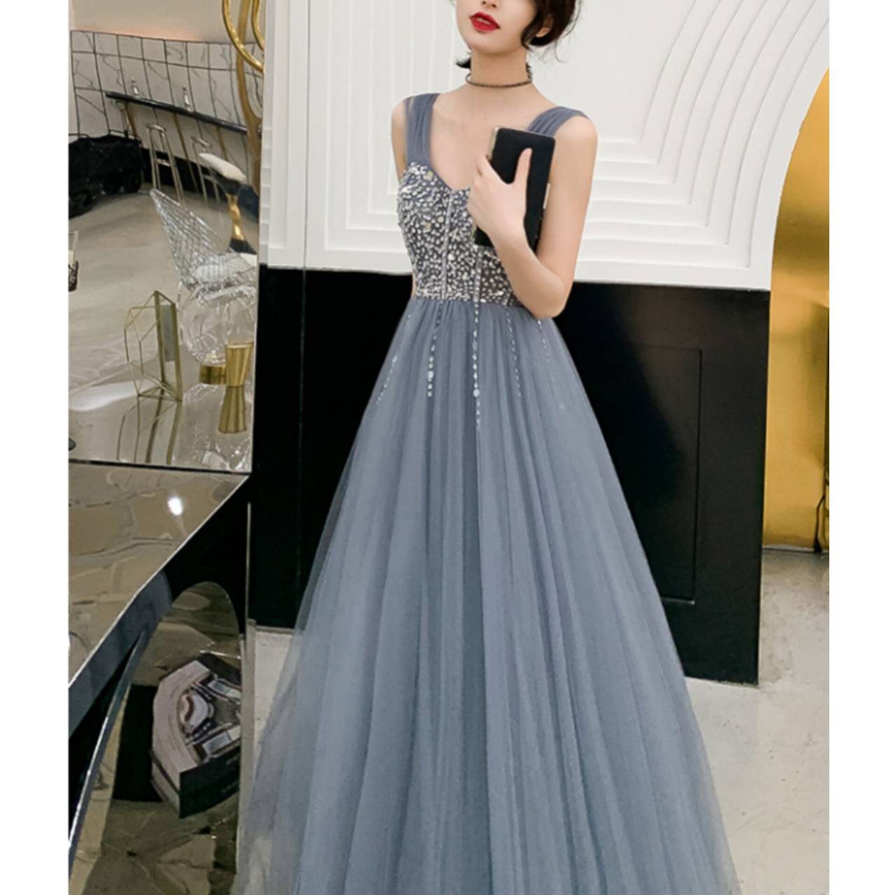 全2色 ドレス イブニングドレス 韓国ドレス 2way ノースリーブ オフショルダー ビジュー キラキラ ハイウエスト レースアップ Aライン フレア チュール オーガンジー シアー 淡色 XS/2XL 韓国【K1425】