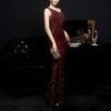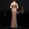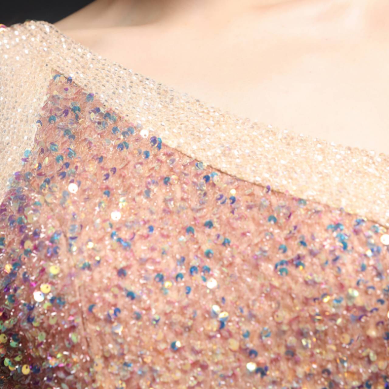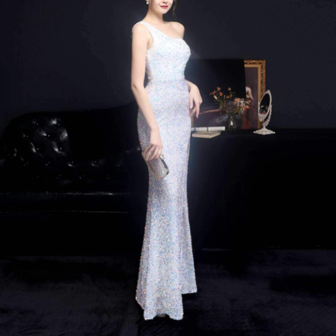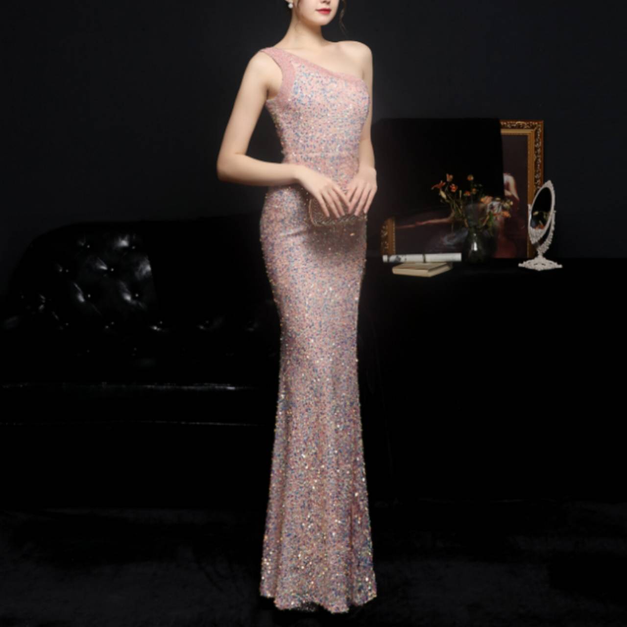 全5色 ドレス イブニングドレス 韓国ドレス キラキラ スパンコール ワンショルダー ハイウエスト マーメイド ハイスリット ロング 美脚効果 グリッター S/2XL 韓国【B5520】