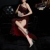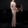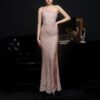 ベルベット ドレス イブニングドレス 韓国ドレス ハイネック 5分袖 首元シースルー ハイウエスト マーメイド ロング ブラック XS/3XL 韓国【K3328】