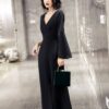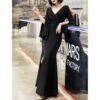 動くたびに優雅に揺れる袖と、しなやかに流れるラインが美しい“韓国モードな高級ロングドレス”。上質なマットストレッチ素材を使用し、身体のラインを拾いすぎずに美しく整える設計。