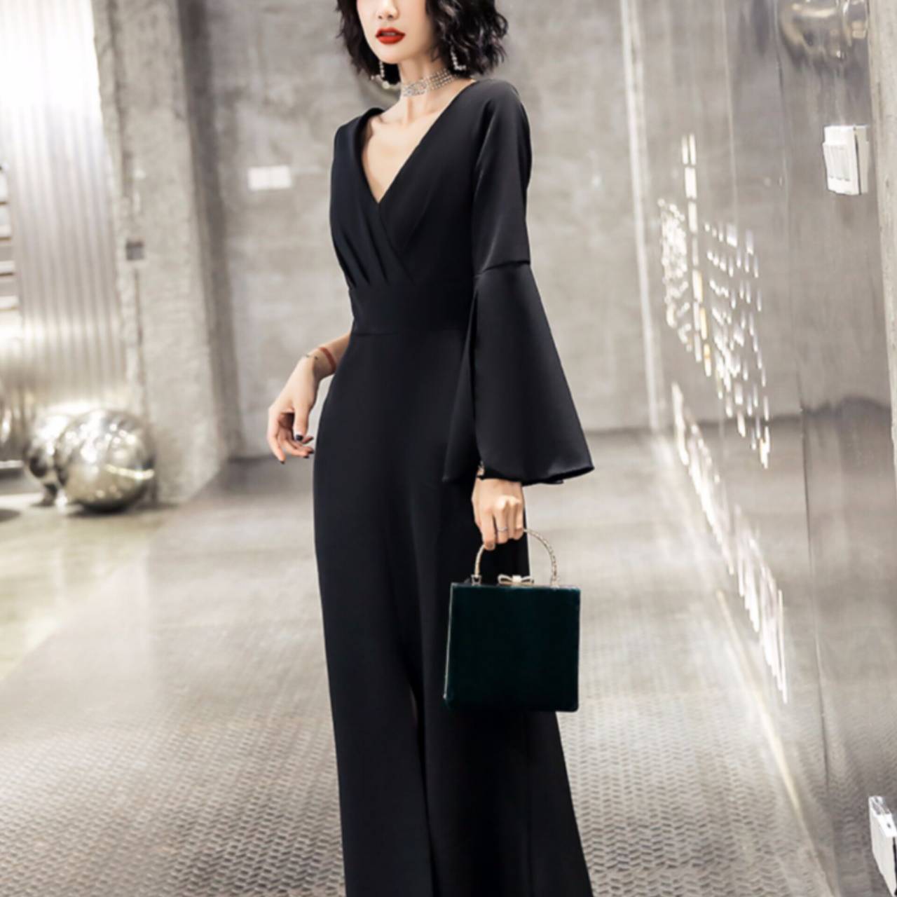 サイズは【XS〜3XL】まで幅広く対応。フォーマルなパーティーやディナー、結婚式二次会でも視線を集める、気品と洗練を両立した1着。