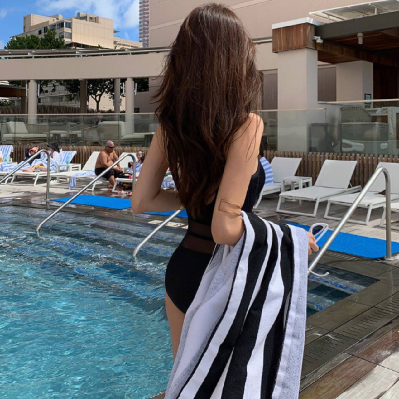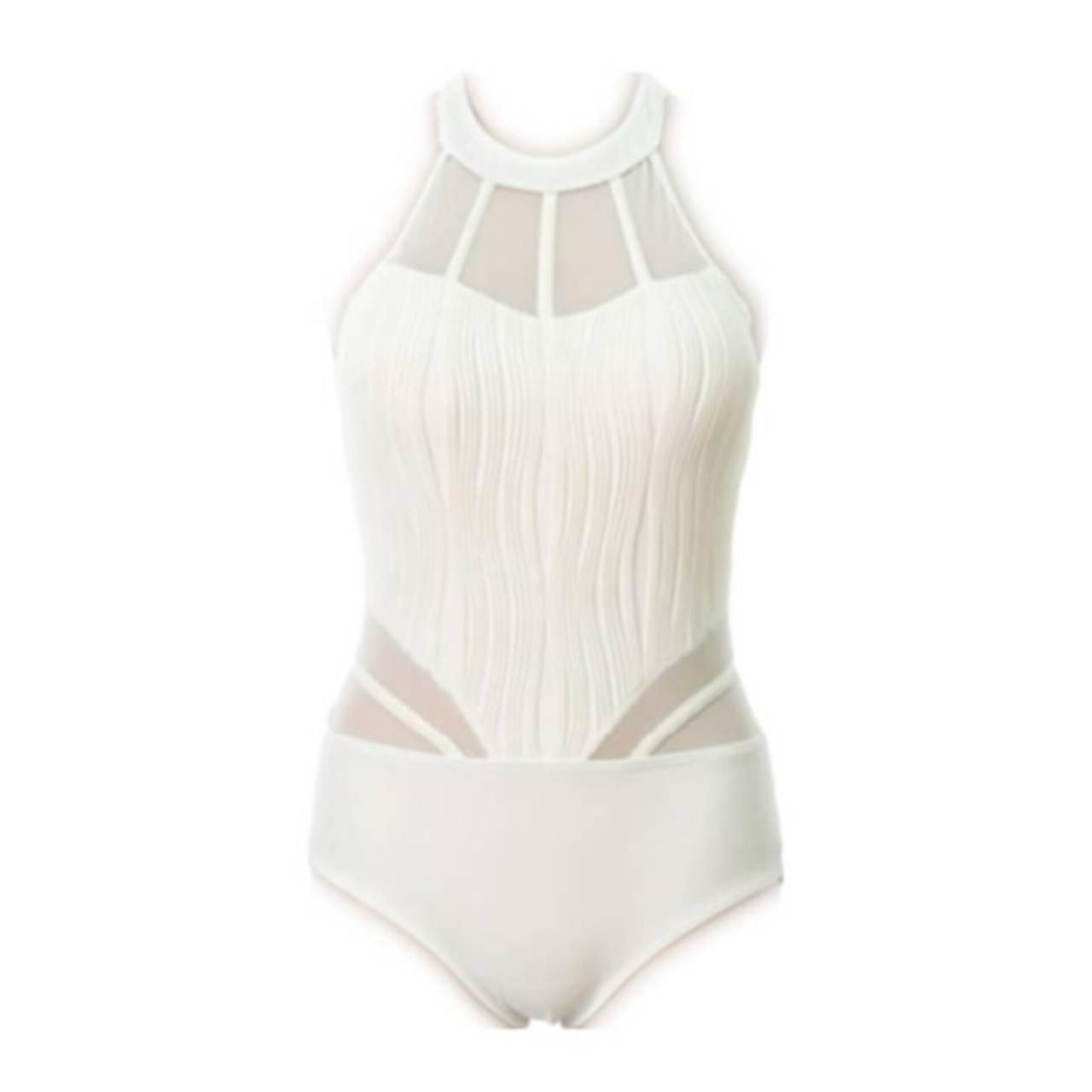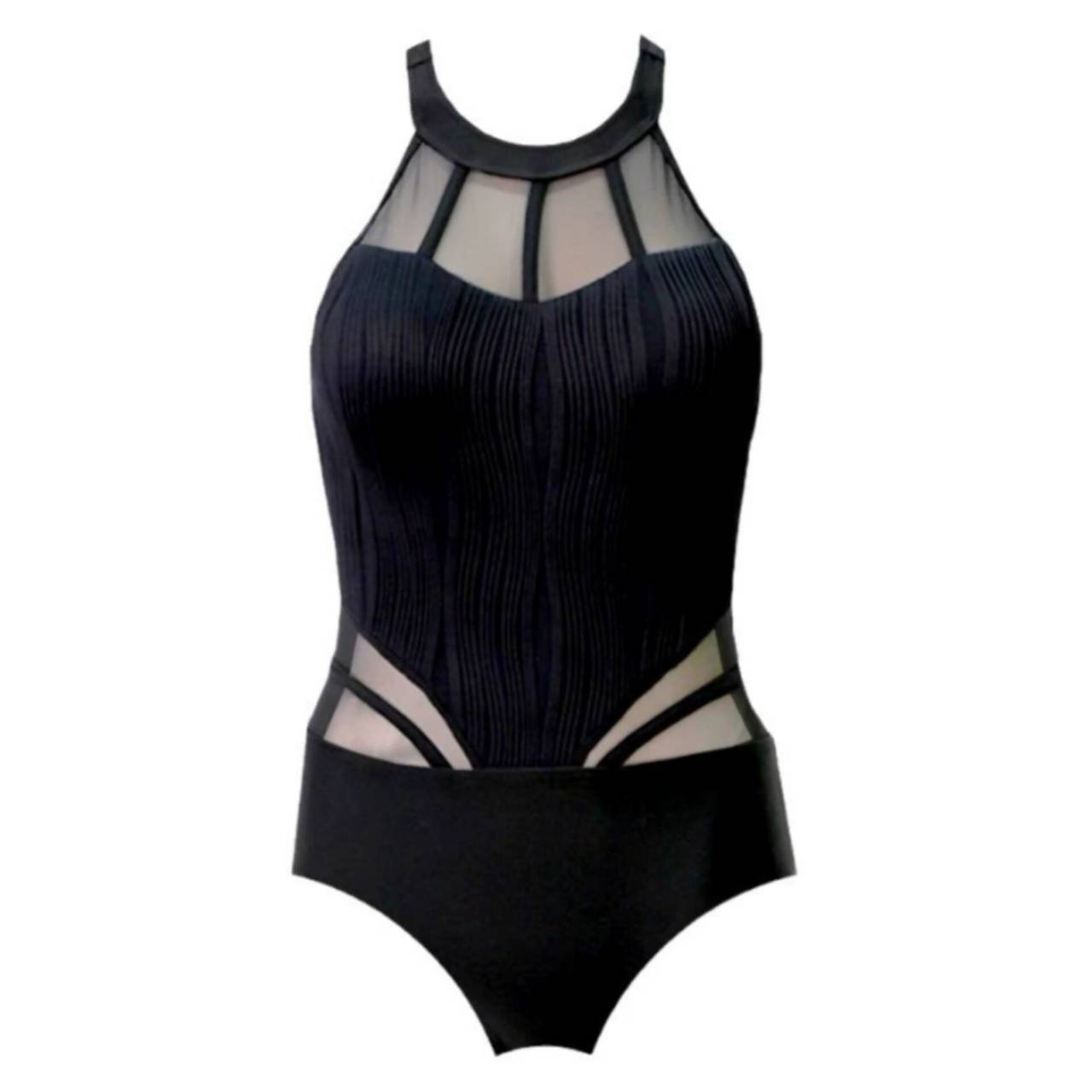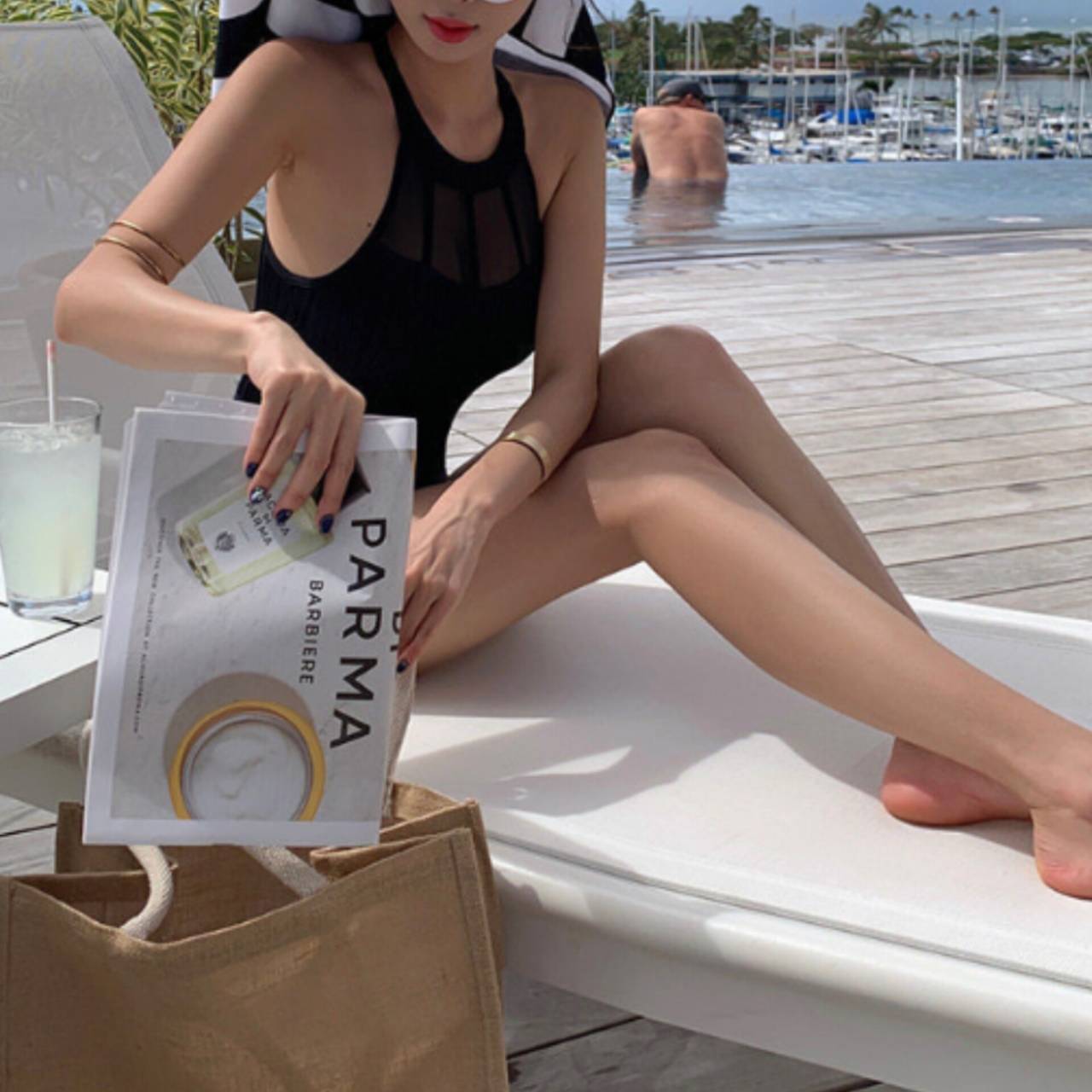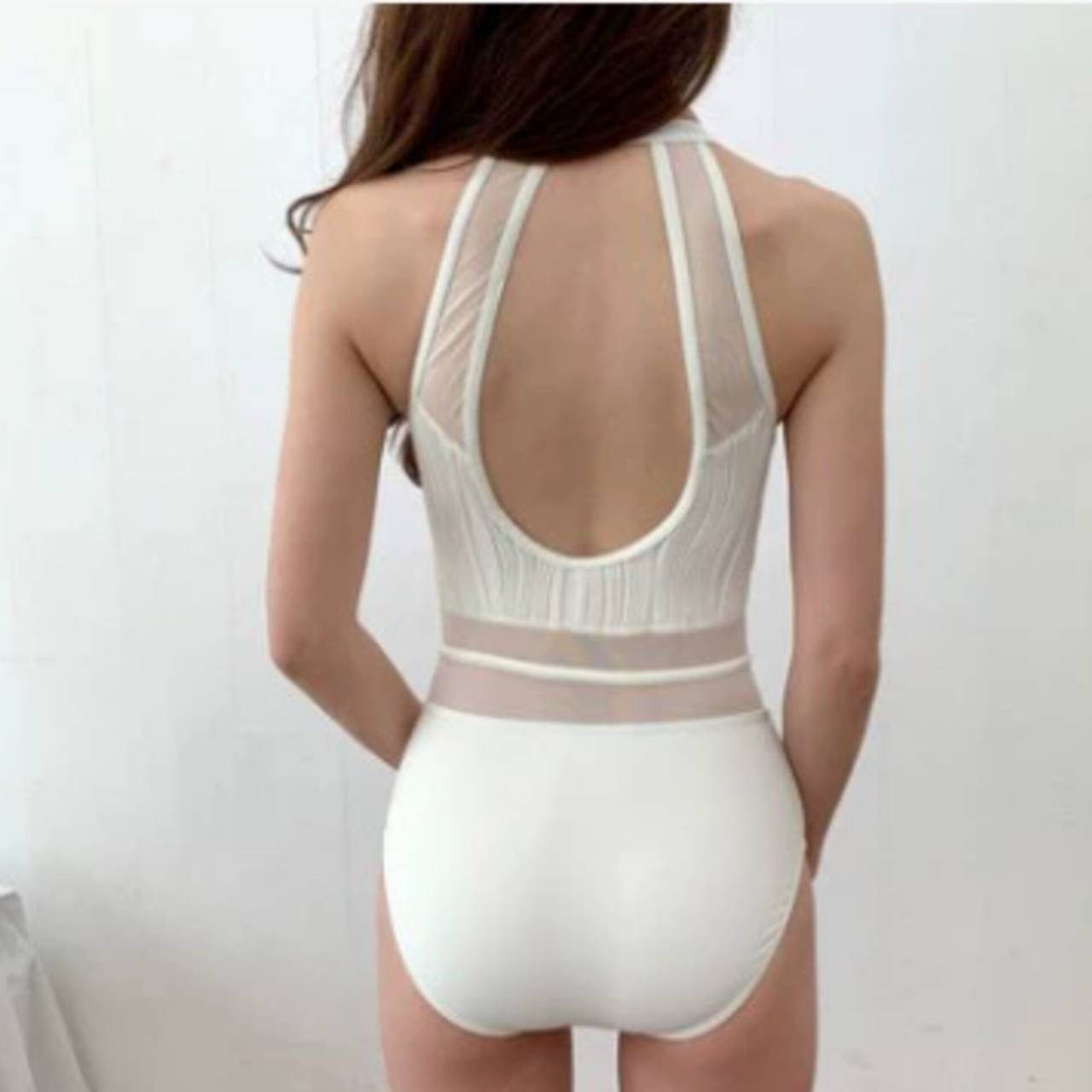 アメリカンスリーブ ワンピース水着 シアー バックオープン ハイウエスト 全2色【B180】