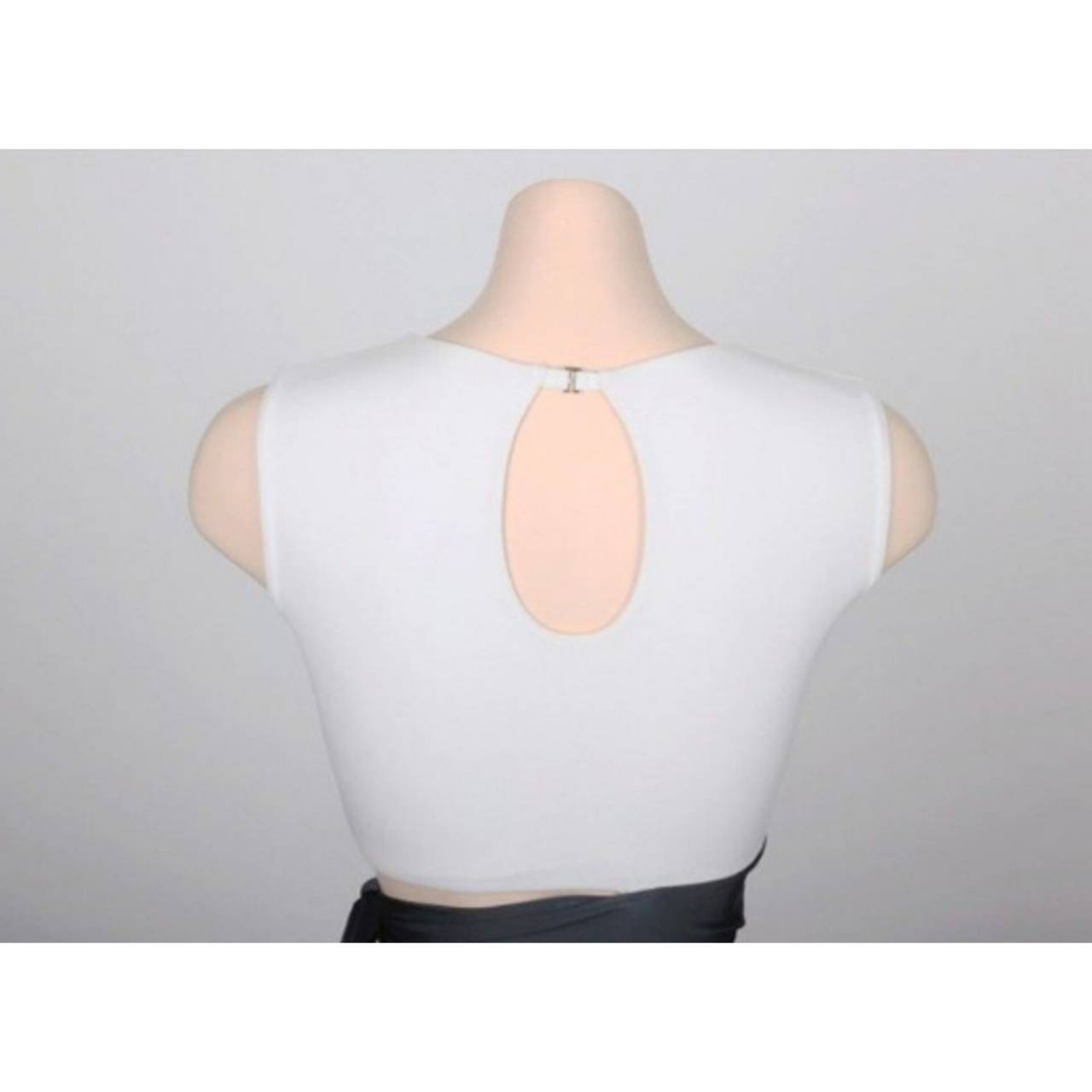 水着 タンキニ セパレート水着 韓国水着 クルーネック ノースリーブ クロップド丈 サイドリボン バックオープン ハイウエスト ブロックカラー スタイルアップ 脚長効果 体型カバー M/XL 韓国【K7381】