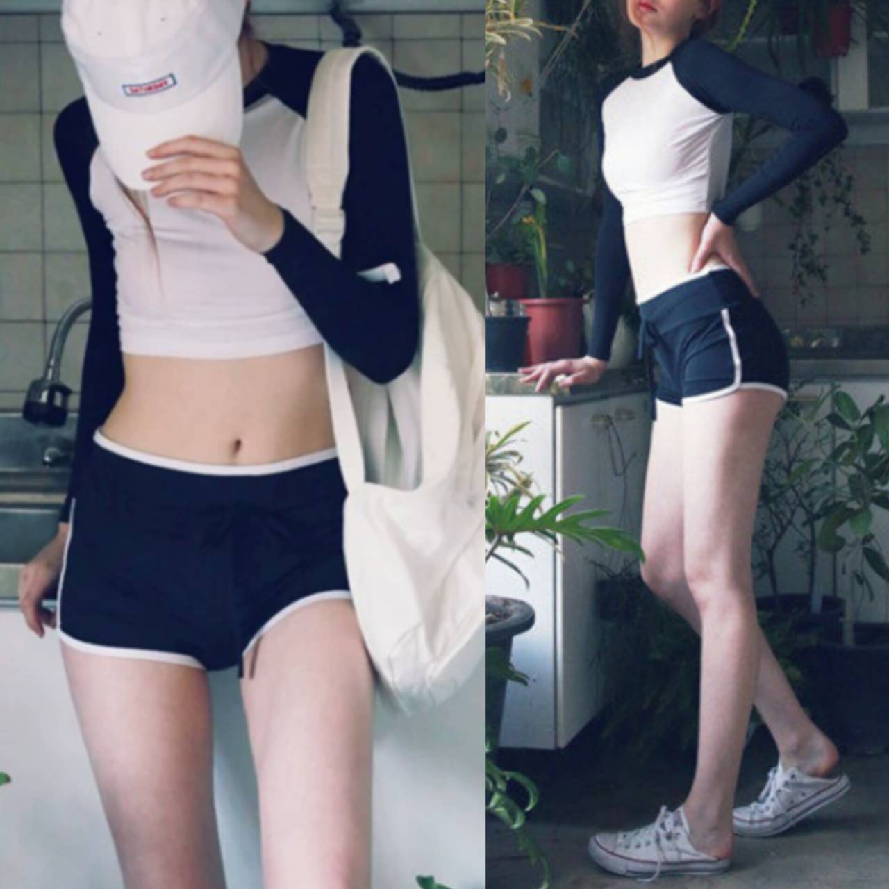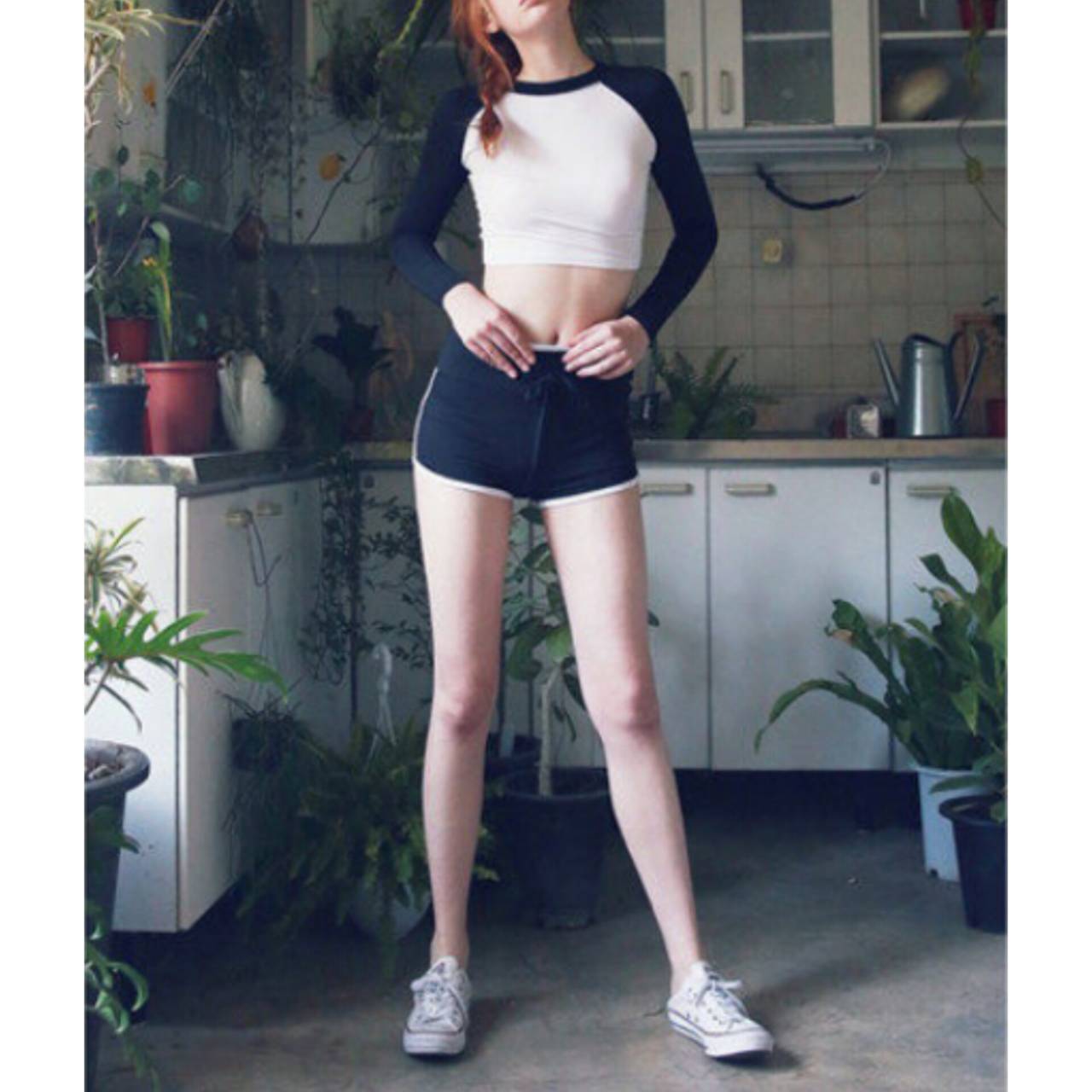 ・ショート丈トップス → ウエスト位置を高く見せ、くびれを強調