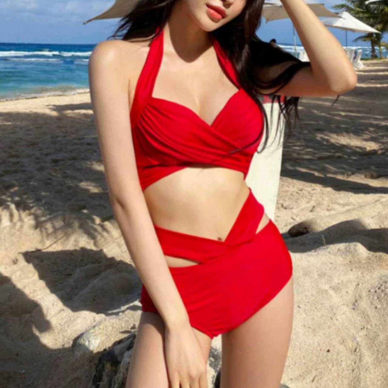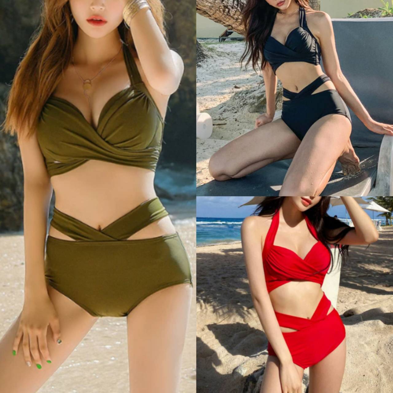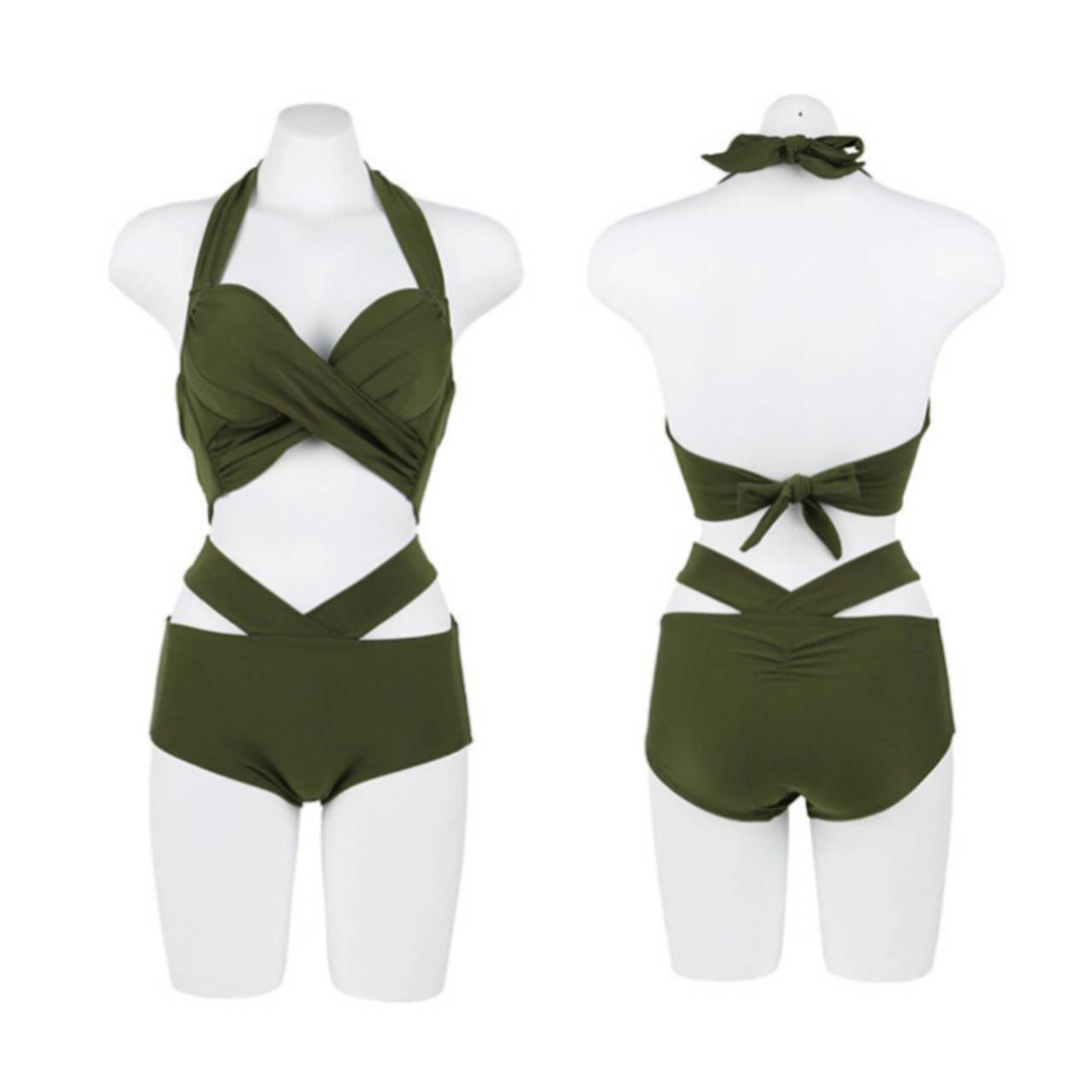 水着 ビキニ クロスデザイン ホルターネック ハイウエスト 全3色【B9700】
