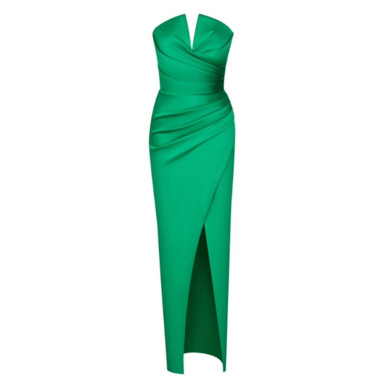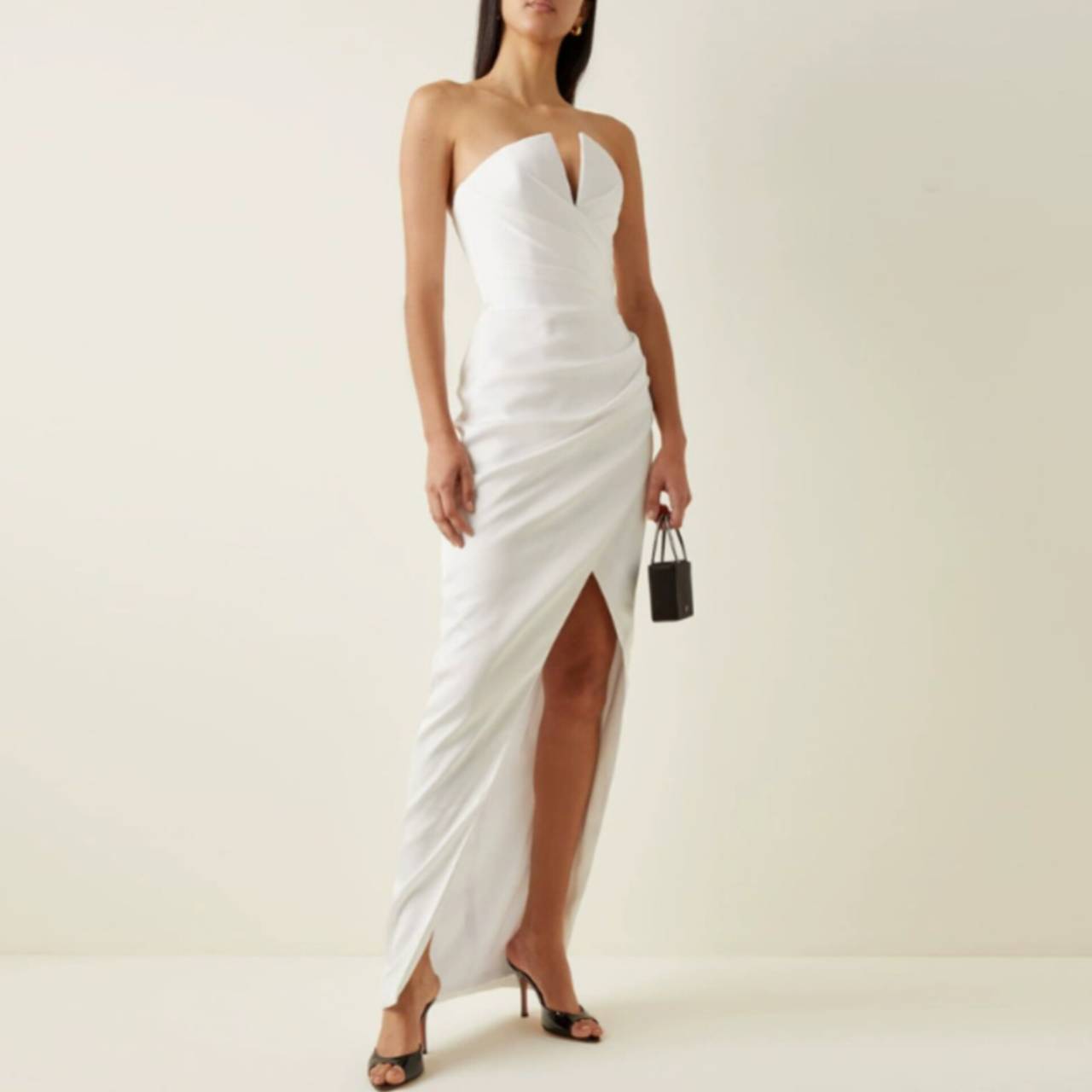 計算されたドレープが身体に沿い、ウエストを美しく引き締めながら、流れるようなラインで脚を長く見せます。