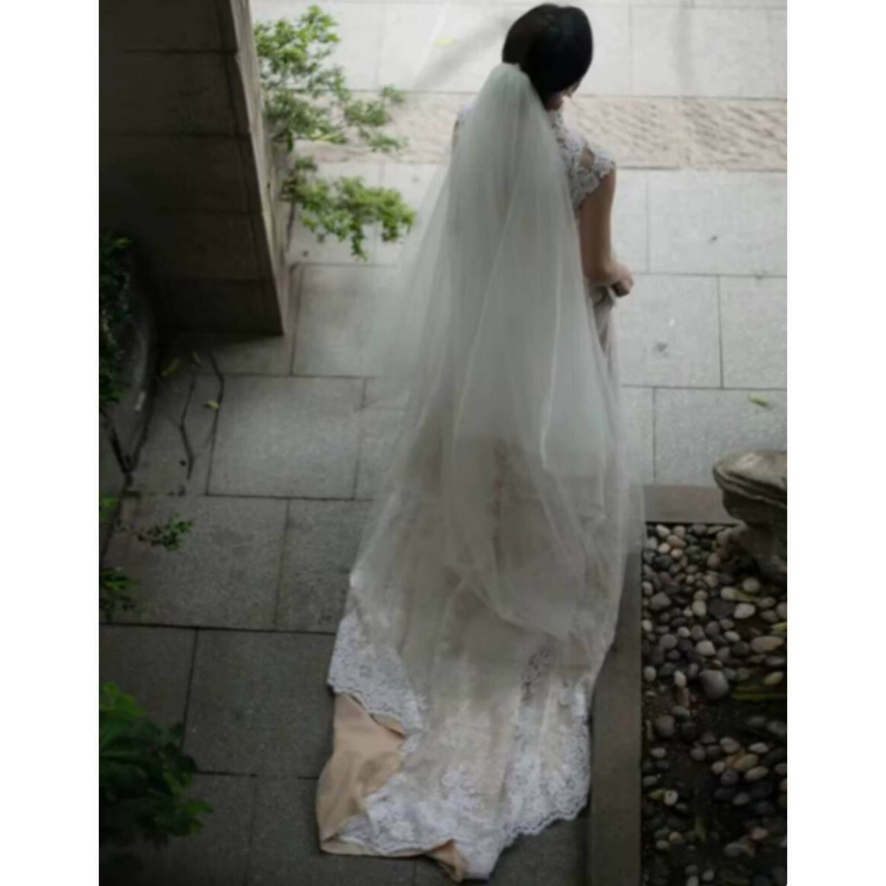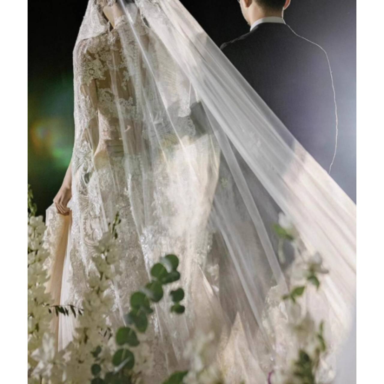 さらに、繊細な刺繍が施されたロングトレーン&ベールが後ろ姿まで完璧に演出。