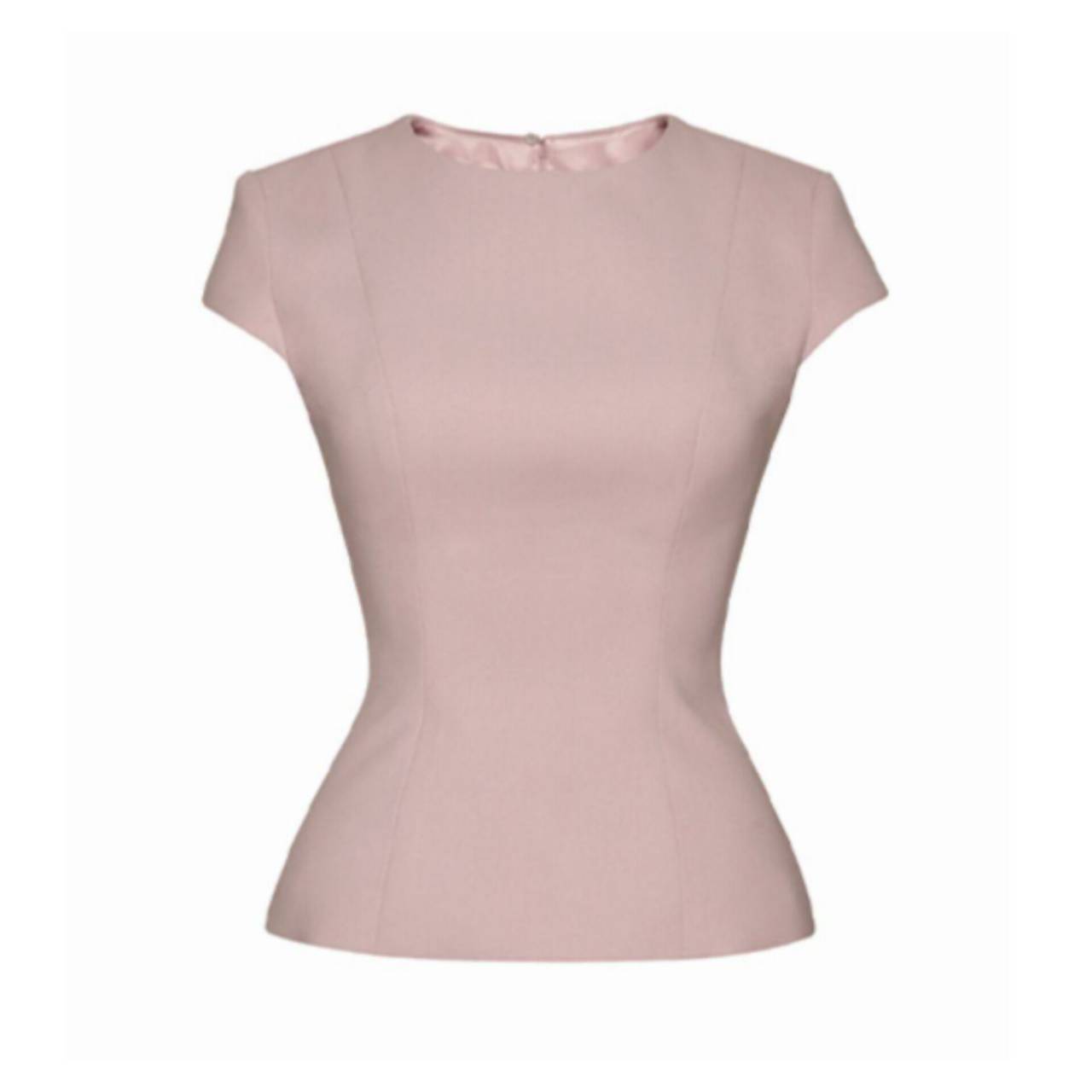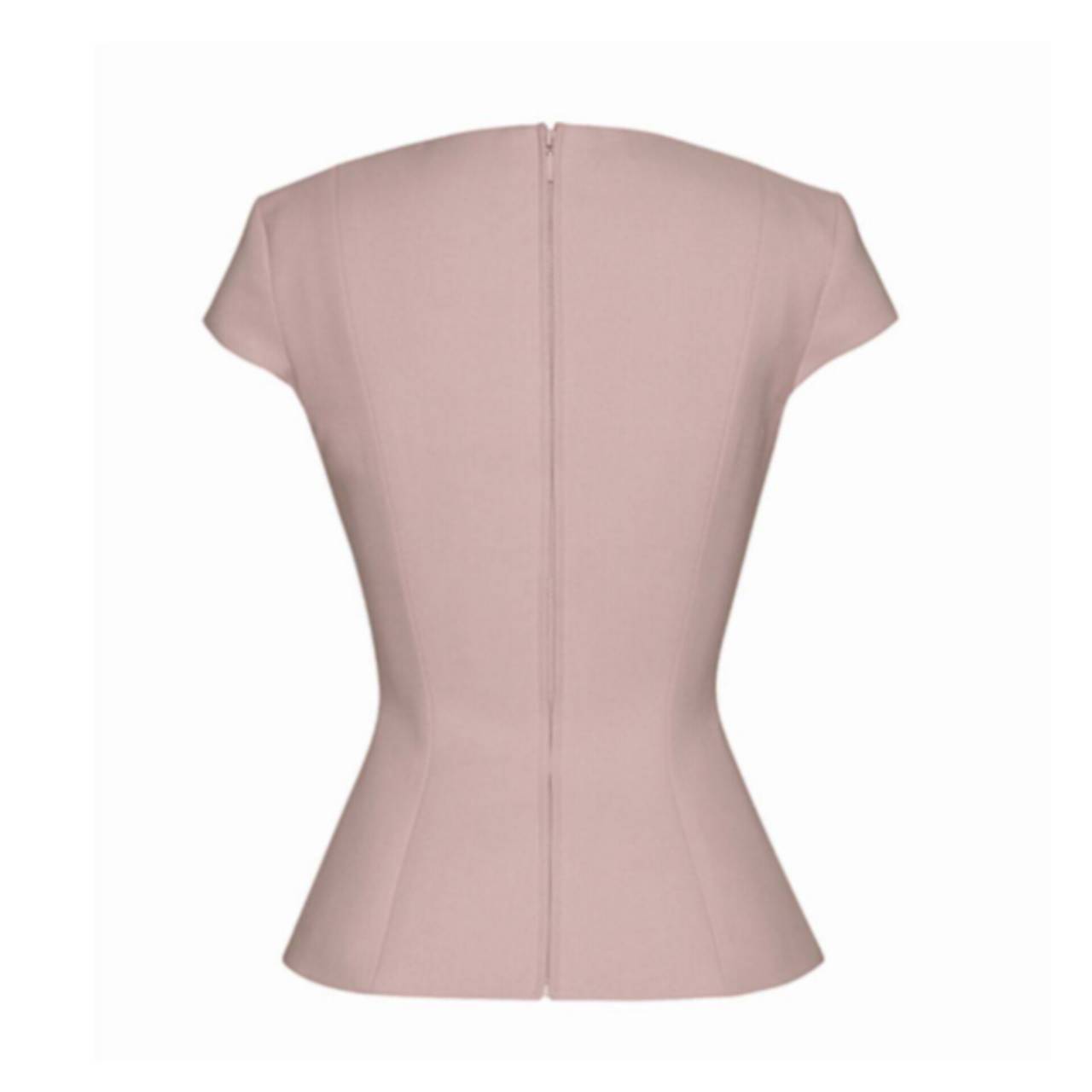気になる二の腕を自然にカバーしながら、ウエスト位置を高く見せ、腰回りはペプラム仕様で立体感をプラス。