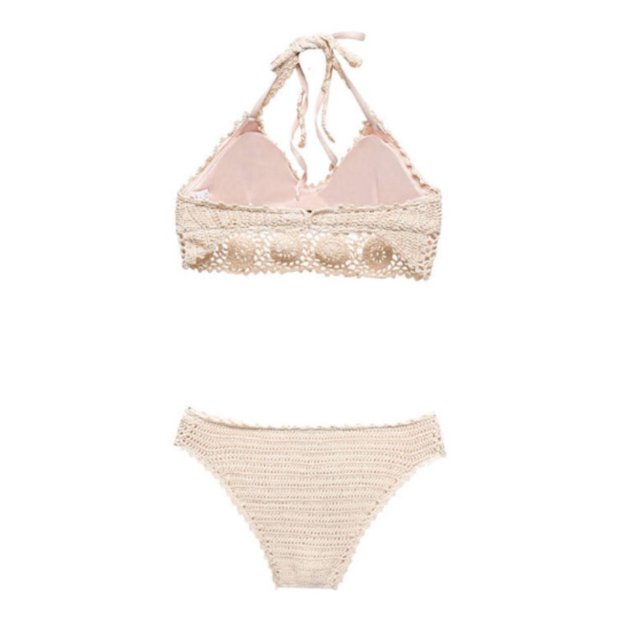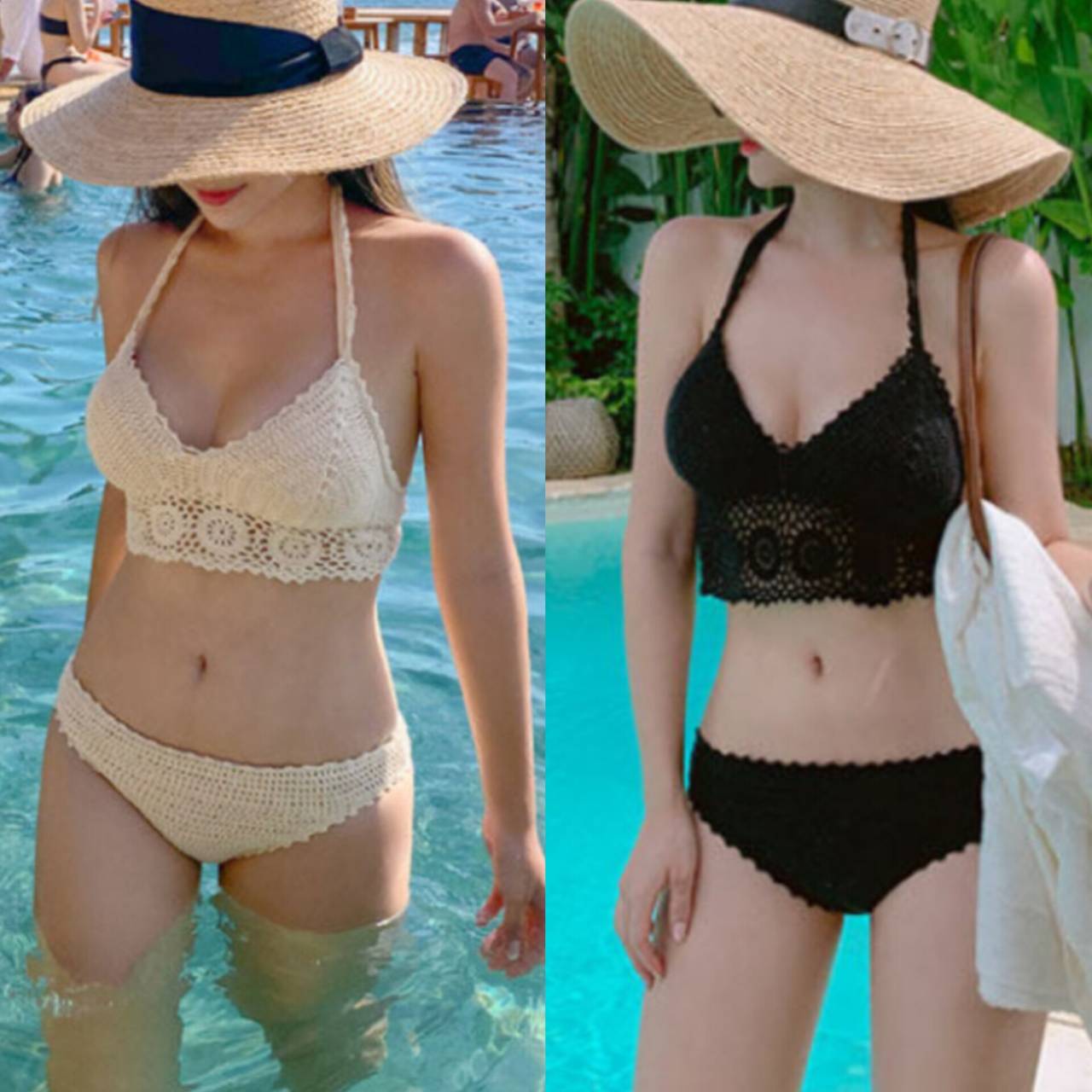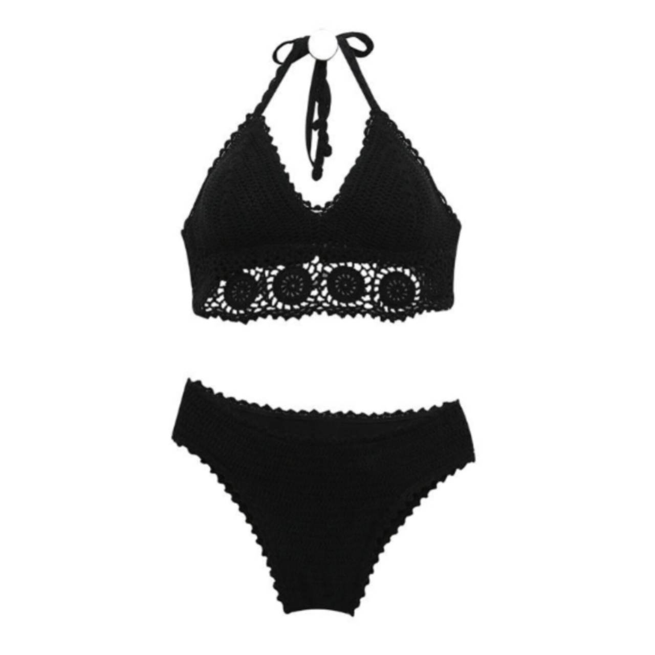 全2色 ビキニ 水着 セパレート水着 韓国水着 総レース オールレース クロシェレース ホルターネック ハイウエスト スタイルアップ 盛れる水着 かわいい M/XL 韓国【K7414】